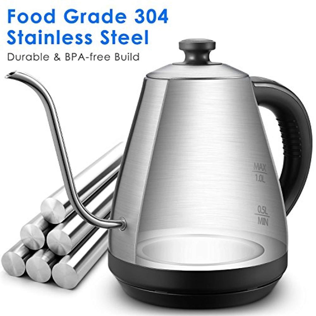Electric Kettle Temperature Control Gooseneck Kettle Electric with LED Display, Pour Over Coffee Kettle Stainless Steel Water Boiler by KIKET, 1000W