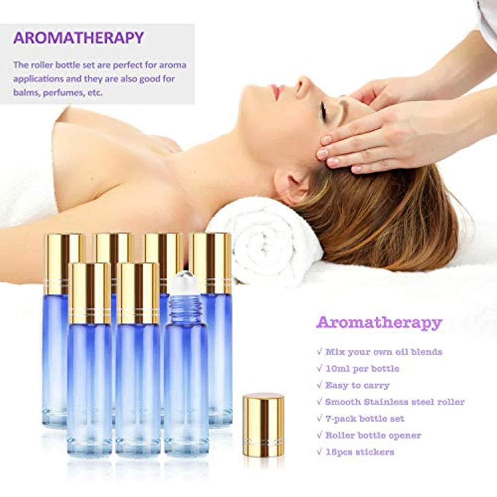 Essential Oil Roller Bottles 10ml (Gradient Blue, Glass, Pack of 6) - Stainless Steel Roller, Individual Package per Bottle, Opener n Labels Included - Handy Picks