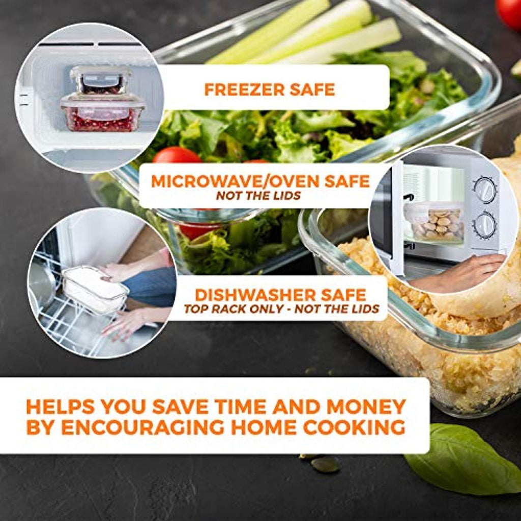 Glass Food Storage Containers [13-piece set] - Meal Prep Leakproof Container With Airtight Snap On Lids - Microwave, Oven, Freezer, Dishwasher Safe. Best For Kitchen, Lunch & Pantry - BPA Free