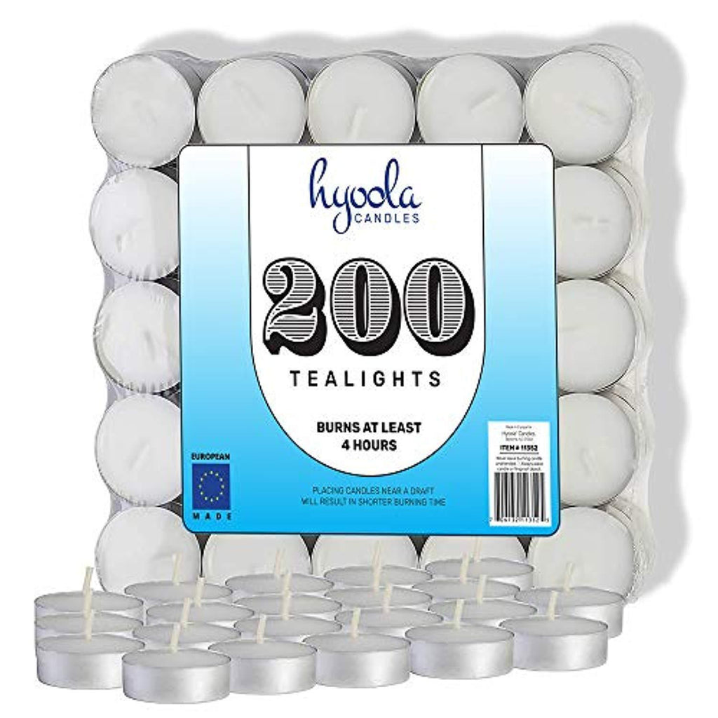 Hyoola Tea Lights Candles - 200 Bulk Candles Pack - European Quality White Unscented Tealight Candles - 4 Hour Burn Time