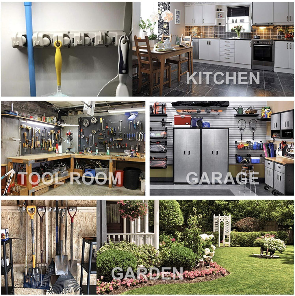 Imillet Mop and Broom Holder, Wall Mounted Organizer-Mop and Broom Storage Tool Rack with 5 Ball Slots and 6 Hooks (Gray) (Double Pack)