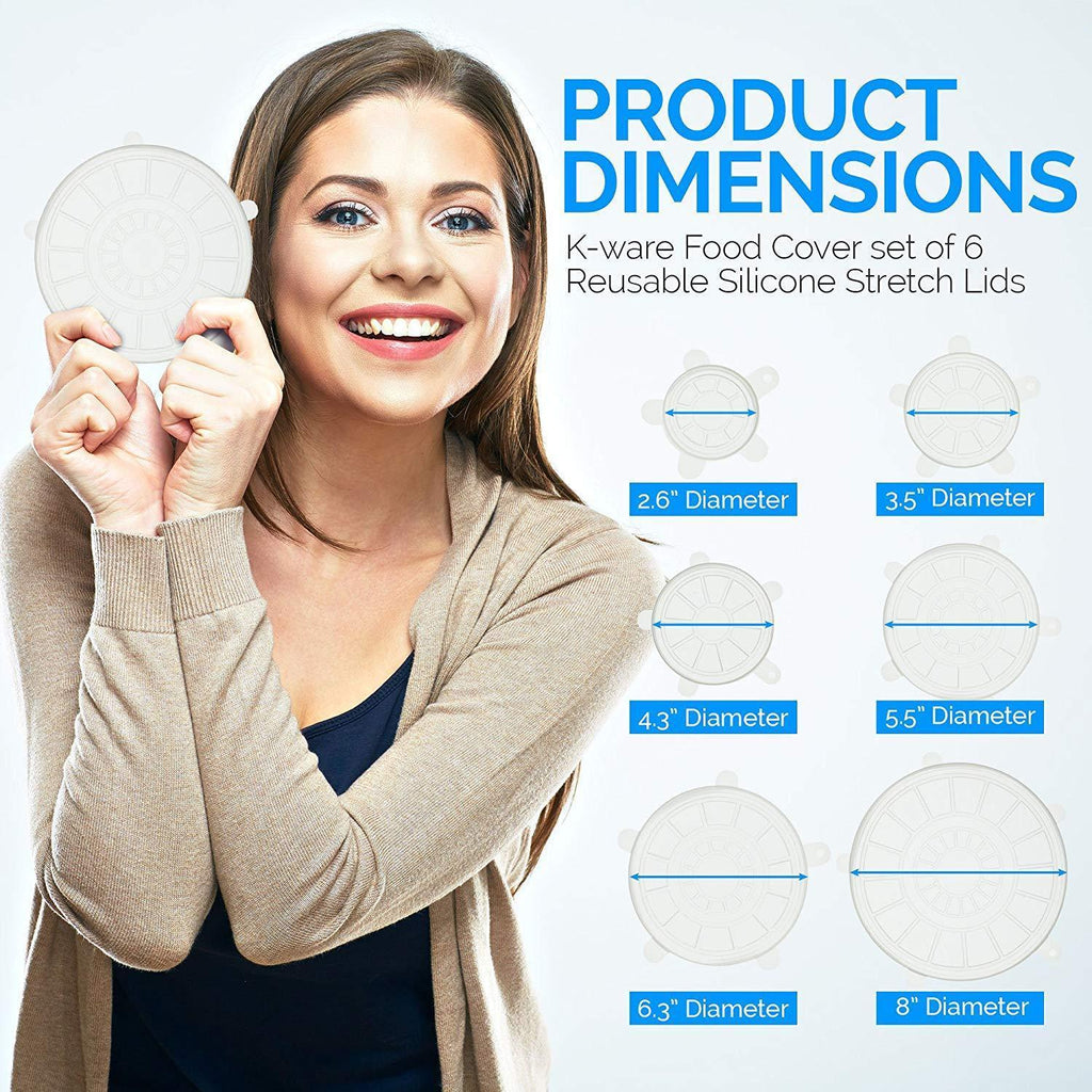 K-ware Silicone Stretch Lids Reusable Set of 6 BPA-Free Food Saver Bowl Covers