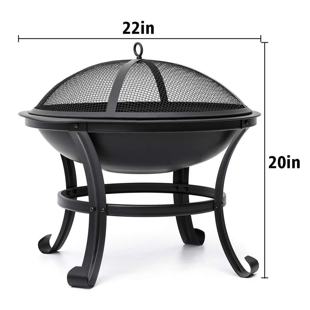 KingSo Outdoor Fire Pit 22'' Patio Fire Steel BBQ Grill Fire Pit Bowl with Mesh Spark Screen Cover, Log Grate, Poker for Camping Picnic Bonfire Patio Backyard Garden Beaches Park