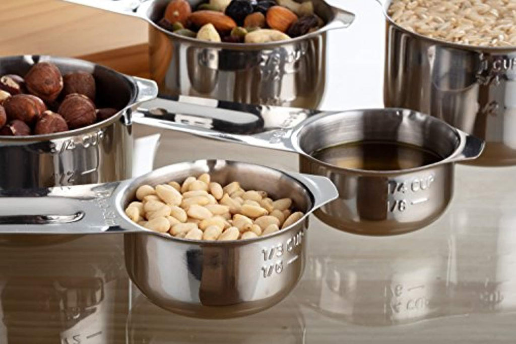 √ FEATURE SIZES: Easy to read engraved markings on each item, includes 1/8 cup, 1/4 cup, 1/3 cup, 1/2 cup, 2/3 cup, 3/4 cup, 1 cup & 1/8 tsp, 1/4...