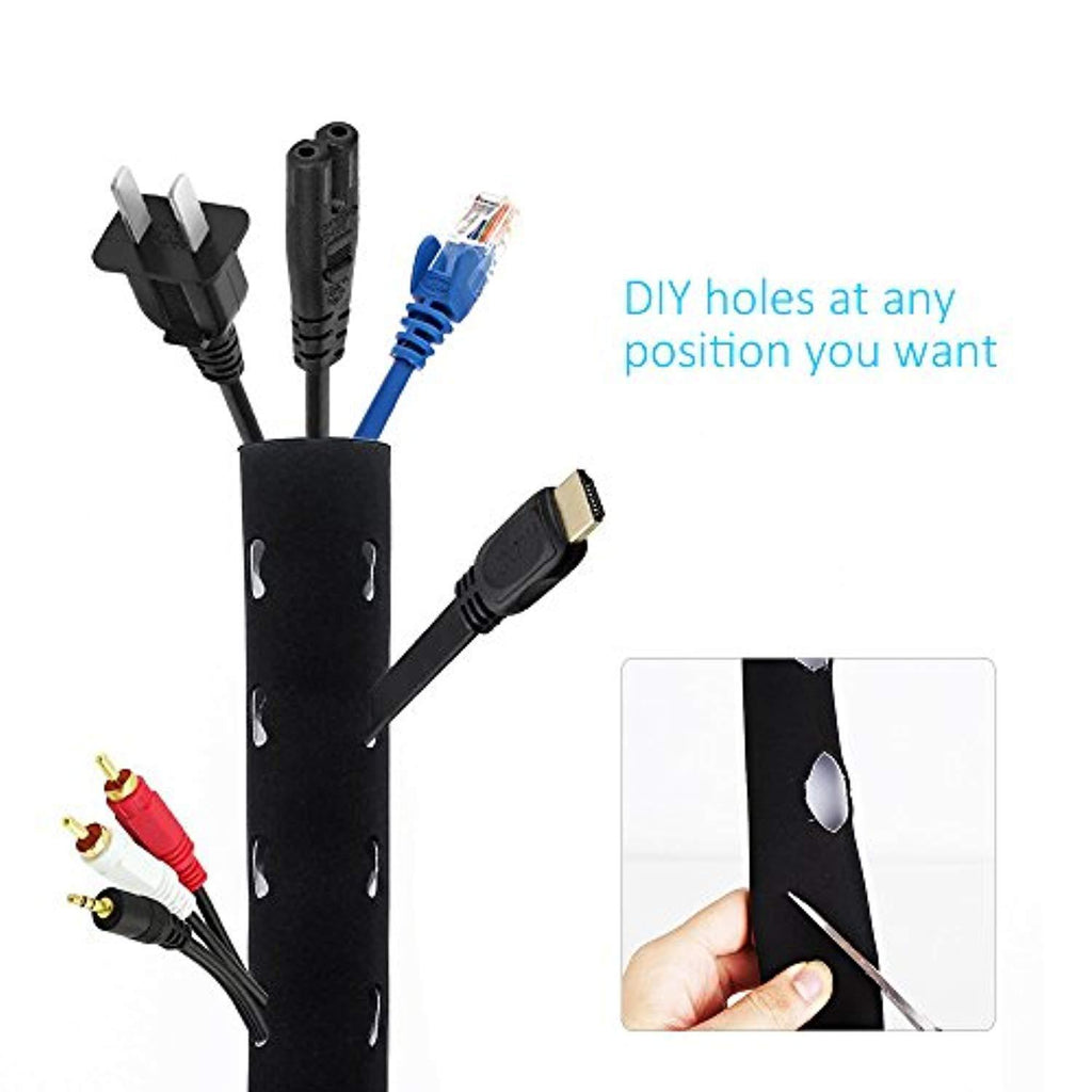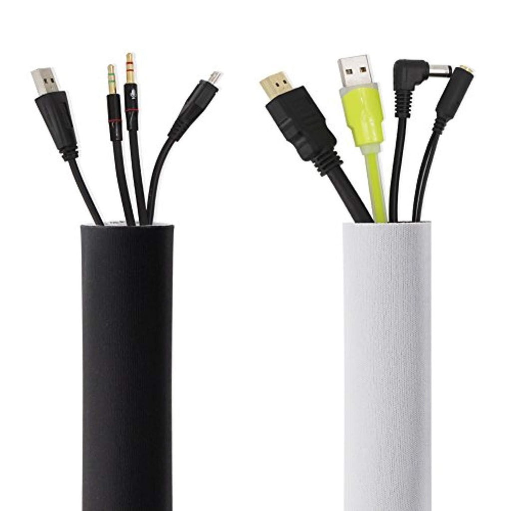 Kootek 118" Cable Management Sleeves, Neoprene Cable Organizer Wrap Flexible Cord Cover Wire Hider Reversible Black & White, Cuttable by Yourself for TV Computer Office Theater
