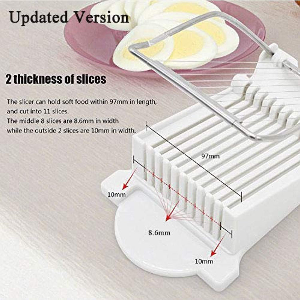 The slicer is designed with 10 cutting wire,which are sharp and cut soft food easily, such as: luncheon meat, cheese, boiled egg, peeled pitaya, peeled Kiwi, ham etc. It is...
