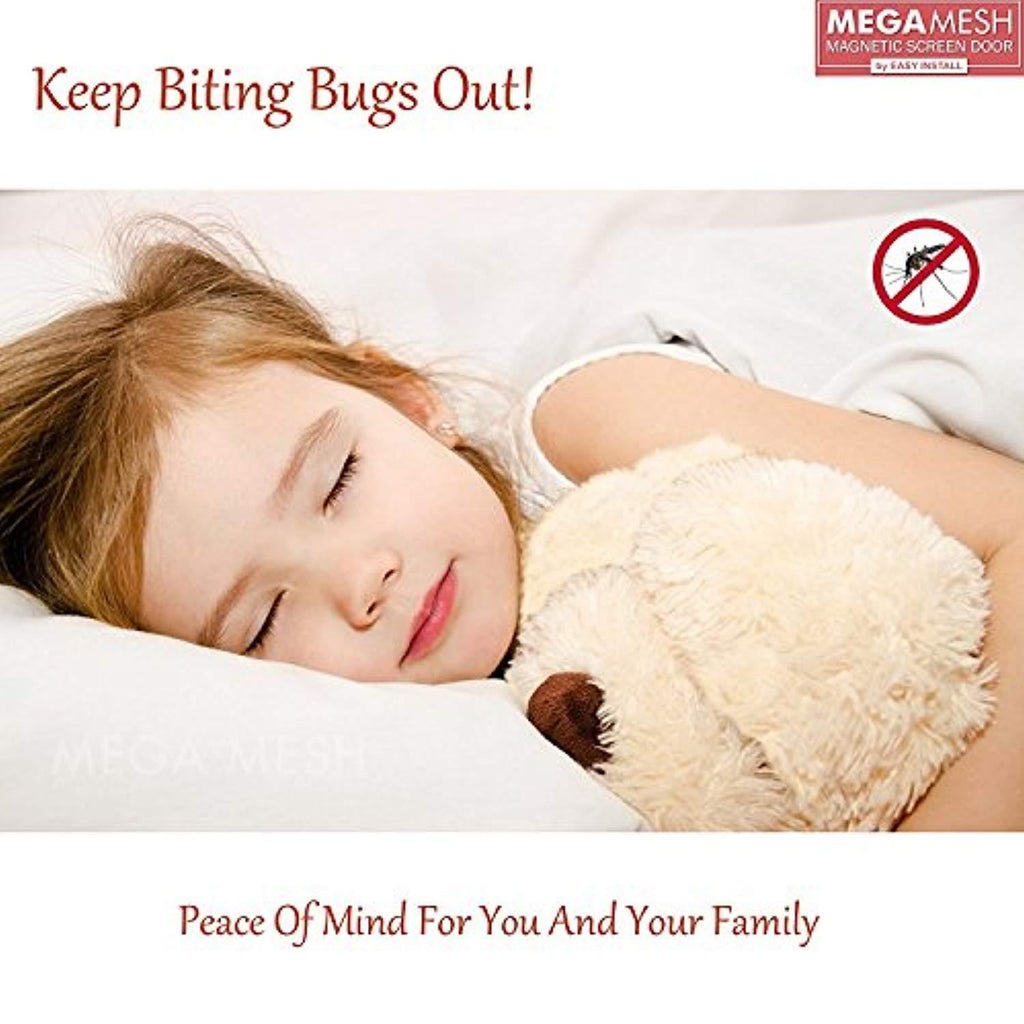 EASY TO INSTALL REMOVE No tools required. ACTUAL SCREEN SIZE 36"x83". Fits door size 34"x82" 26 MEGA MAGNETS SEWN IN MegaMesh uses 26 strong magnetic points of contact SEWN IN...