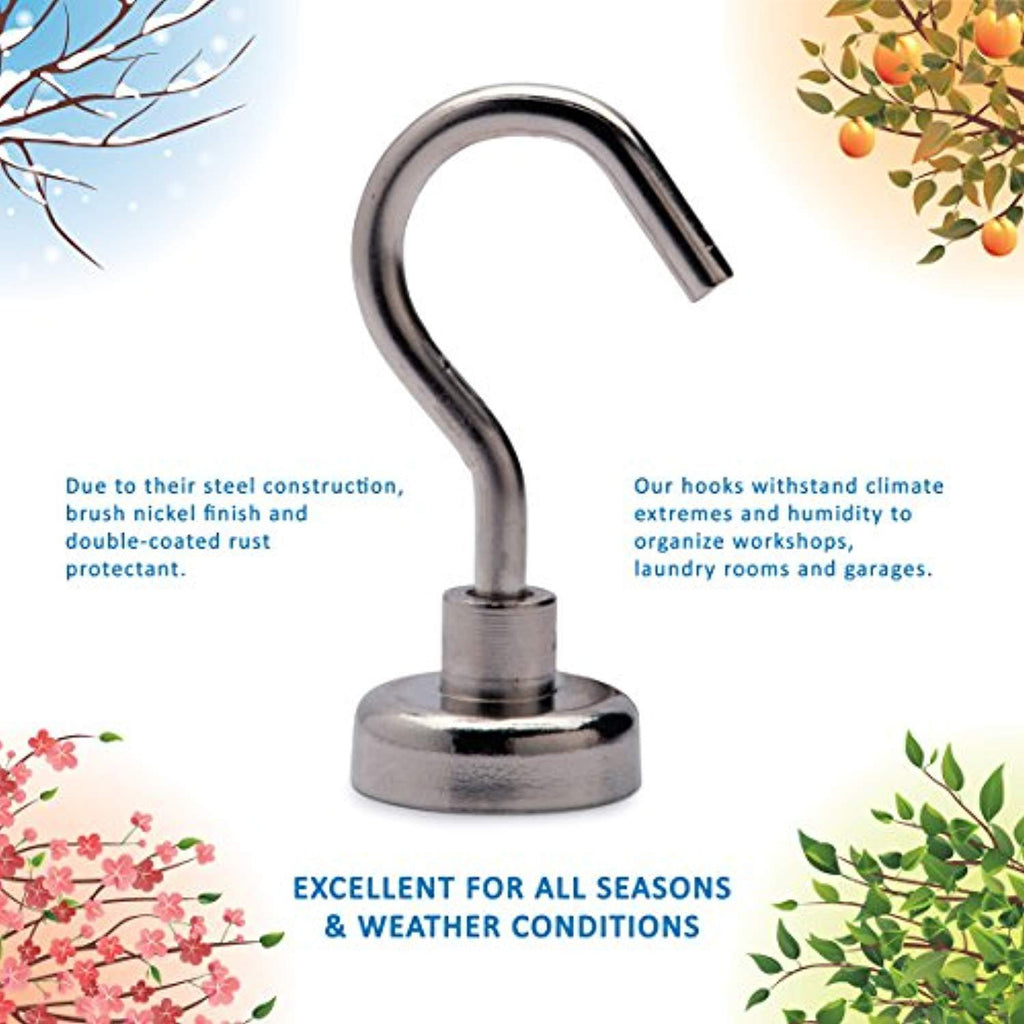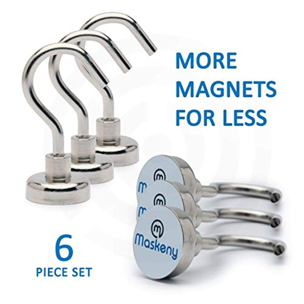 Maskeny 40 LB Magnetic Hooks Strong Neodymium Heavy Duty for Cruise, Kitchen Organization and Indoor/ Outdoor Storage Hanging - Bonus Push Pins Refrigerator Magnet