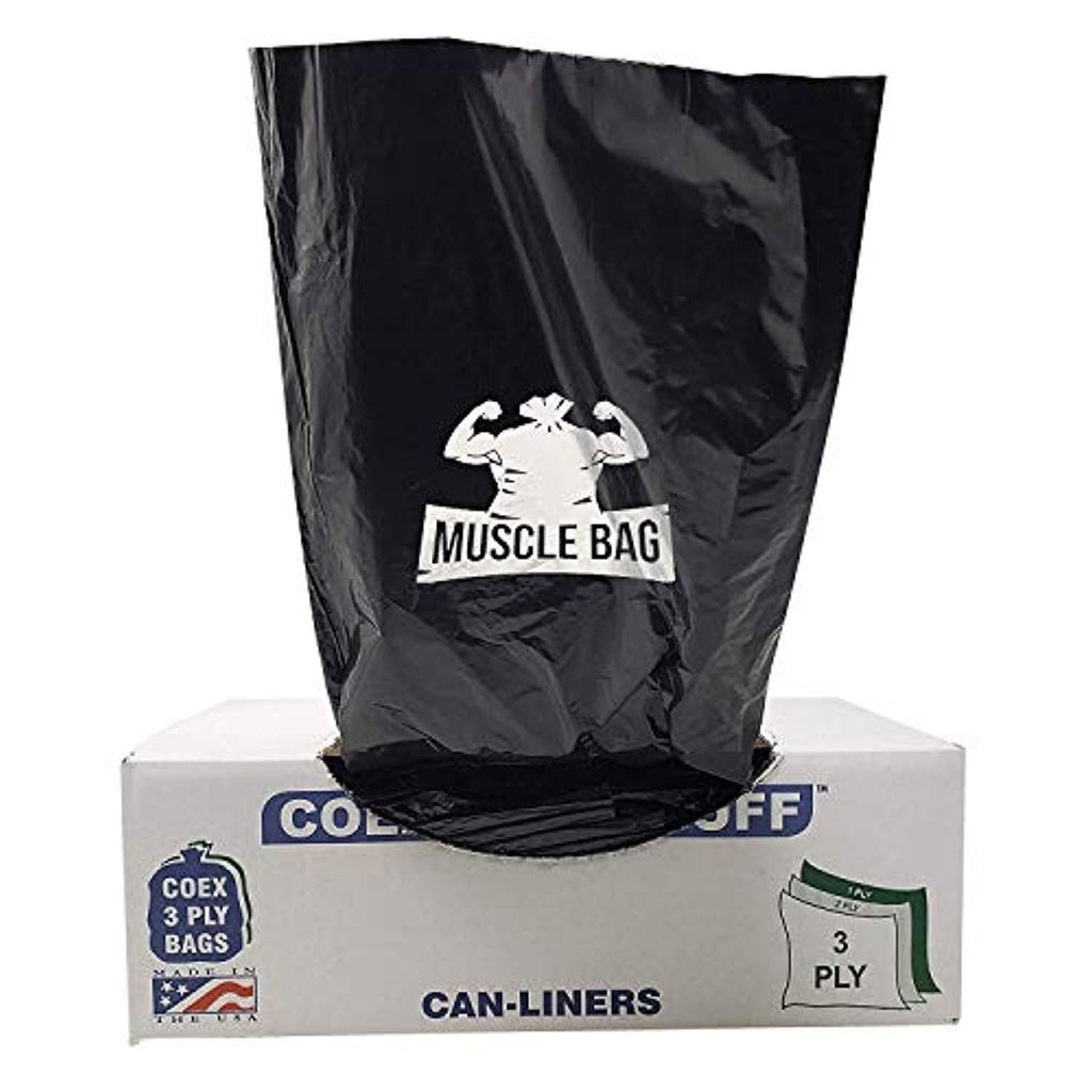 Muscle Bag - 55 Gallon 1.5Mil Trash Bags, Individually Folded, 50 per case, Perforated Top for Easy Dispensing, Coex Plastic, 55gal Garbage Bags