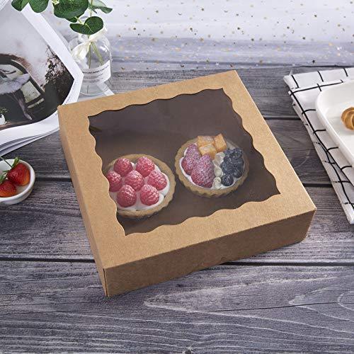 ONE MORE 10inch Natural Kraft Bakery Pie Boxes with PVC Windows,Large Cookie Box 10x10x2.5inch 12 of Pack (Brown,12)