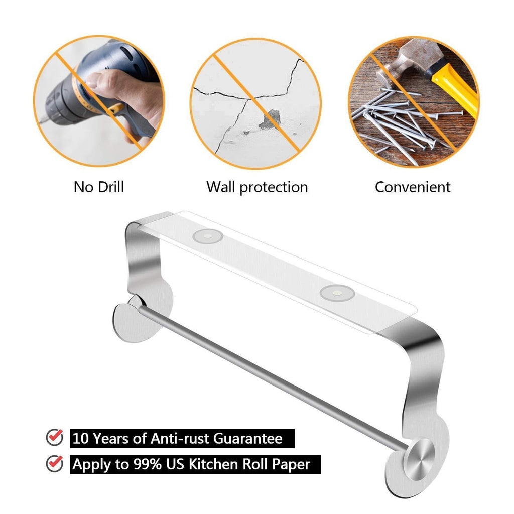 • ★[Adhesive Paper Towel Holder]: No drilling needed, no damage to wall or tiles. A powerful adhesive attached surface firmly with strong bearing capacity. You could tear it off traceless and remove to anywhere you want.