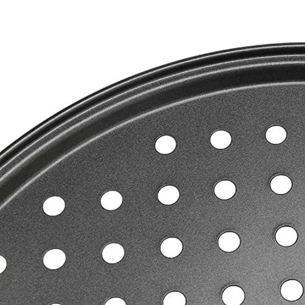 MATERIAL: Made of durable carbon steel, FDA and LFGB standard non-sticking coating, this pizza pan has good thermal conductivity and is not easy deformed. NON-STICK: Features a non-stick finish, allows...