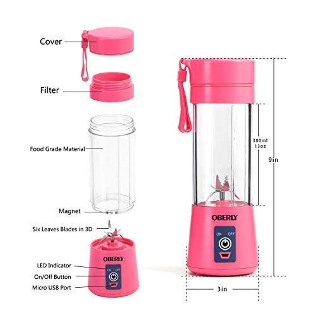 Portable Blender, OBERLY Smoothie Blender USB Juicer Cup - Six Blades in 3D, 13oz Fruit Mixing Machine with 2000mAh Rechargeable Batteries, Ice Tray, Detachable Cup, Perfect Blender for Personal Use (FDA, BPA Free) by OBERLY