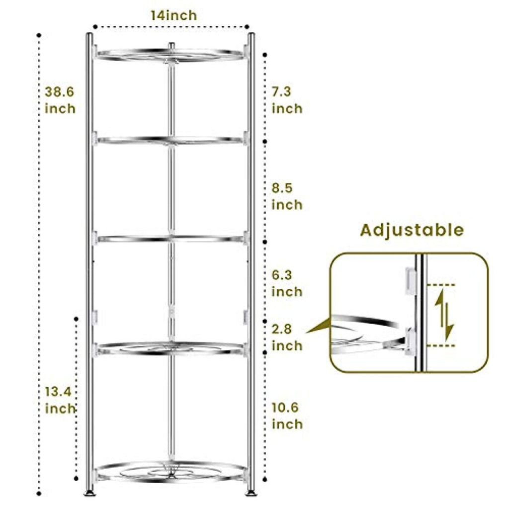 Pot and Pan Organizer, Lifinity 5-Tier Pot Rack Heavy Duty Cookware Stand for Kitchen Organization and Storage Free-Standing Kitchen Organizer for Pot and Pan, Stainless Steel (38.6''Tall)