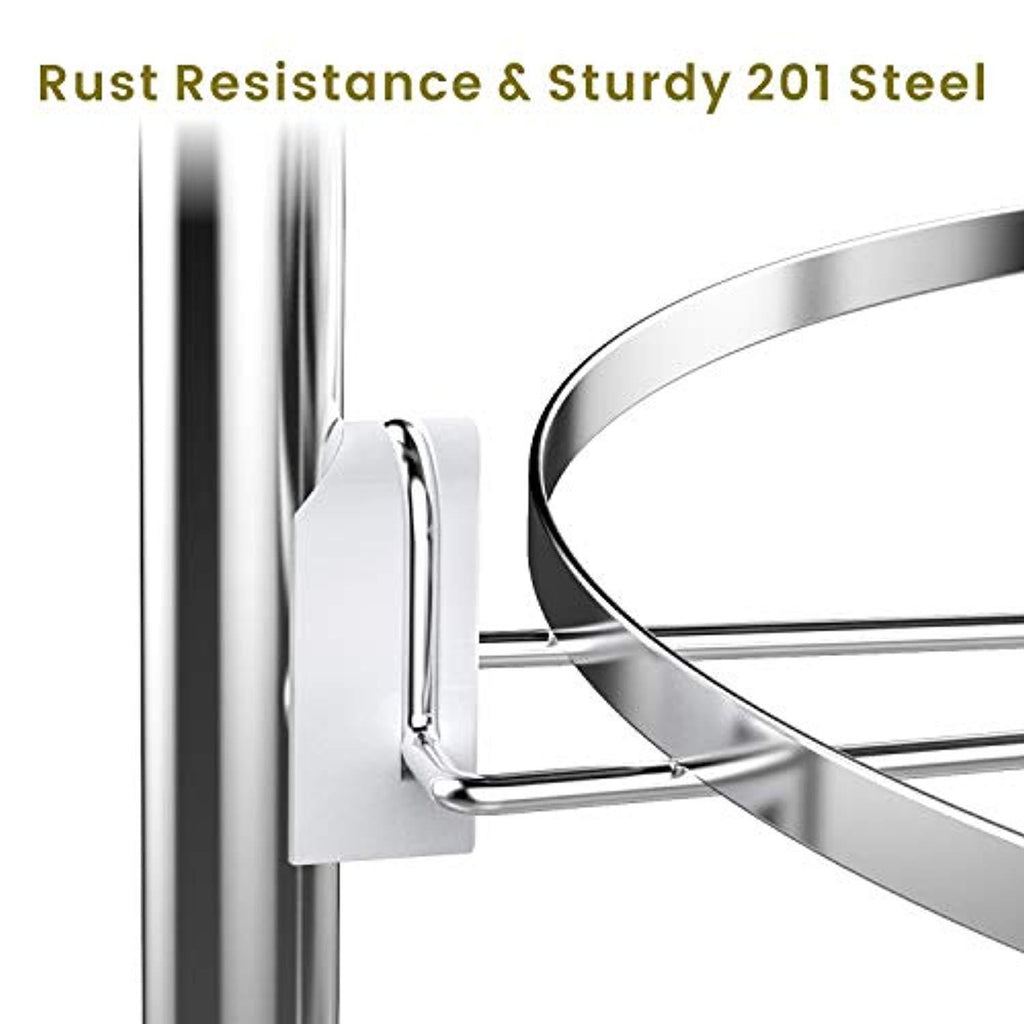 SAVE SPACE:Stores up to 5 pots and pans, with this pan organizer, you don't need to unstack several pans in order to get to the middle pan that you needed....