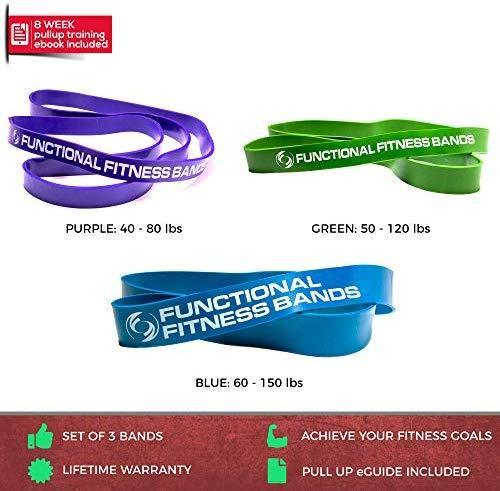 Pull Up Assist Bands Set by Functional Fitness. Heavy Duty Resistance and Assistance Training Band