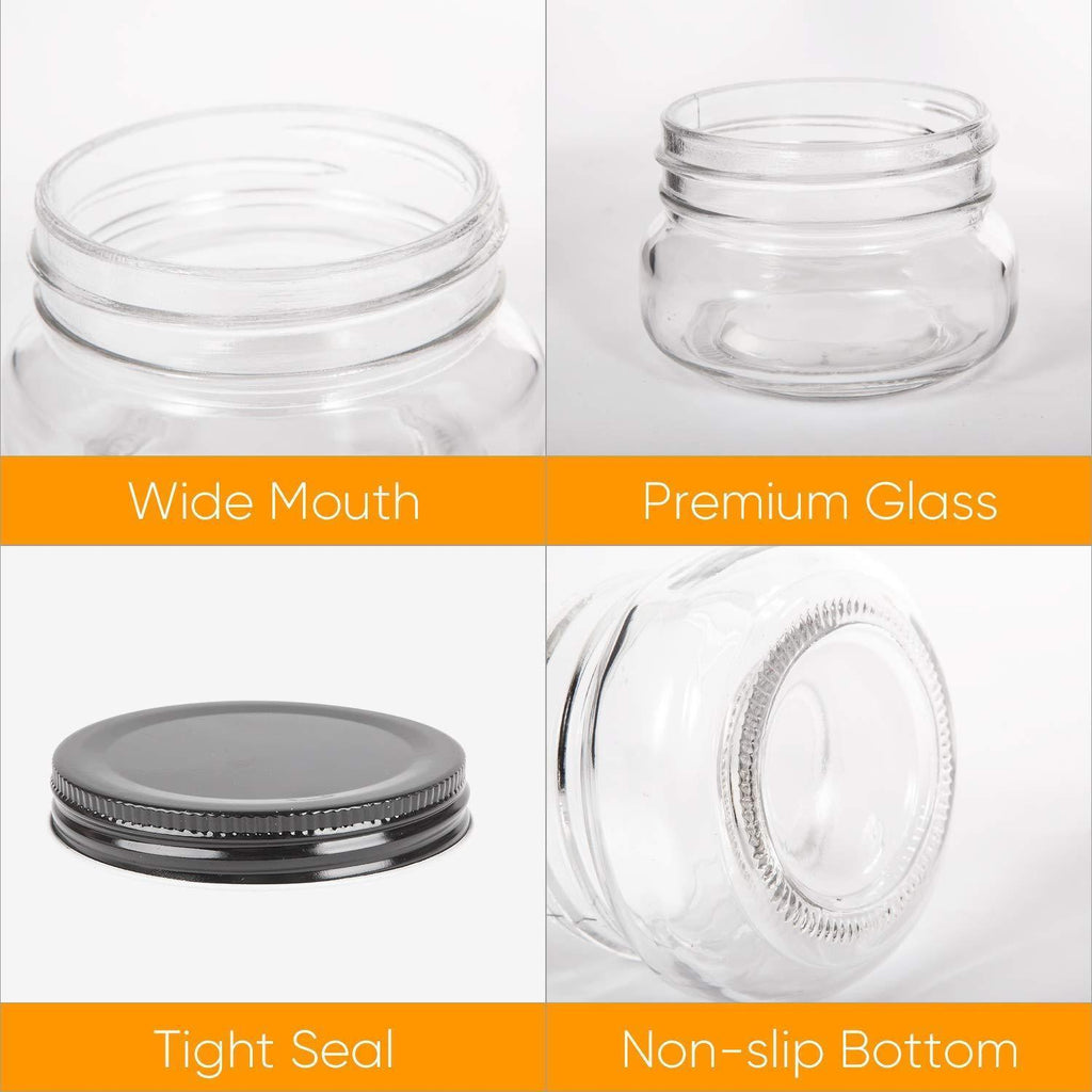QAPPDA Mini Mason Jars Glass Canning Jars,5 OZ Jelly Jars With Regular Lids(Black) Small Jars for Honey,Jam,Favors,Baby Foods,Spice Jars 40 PACK