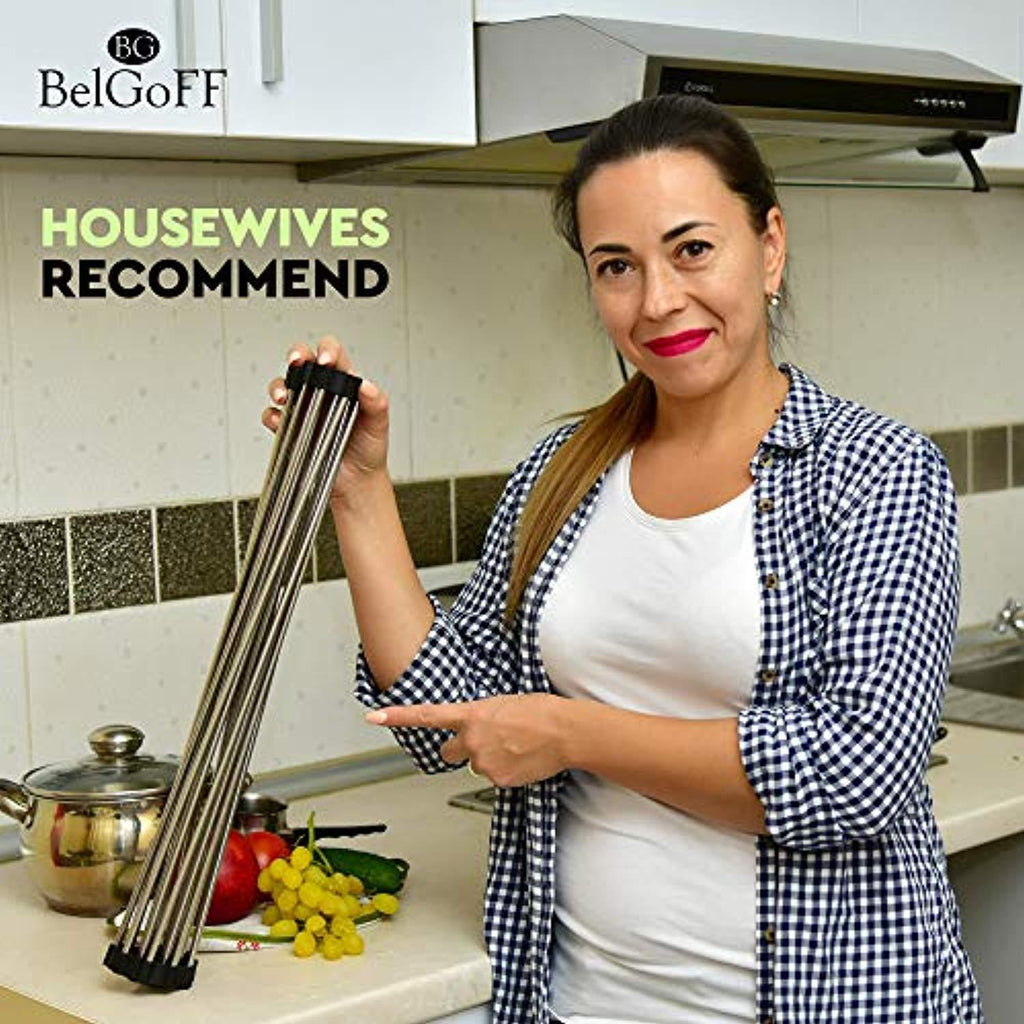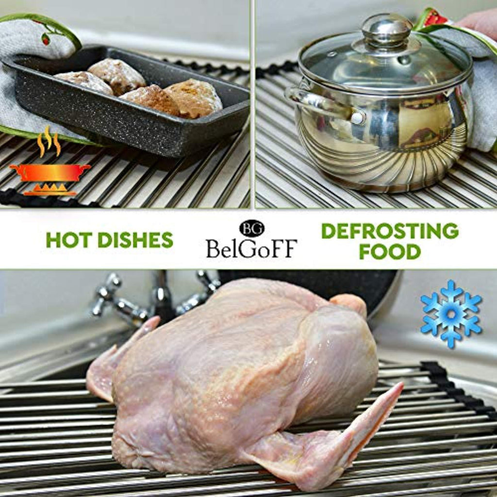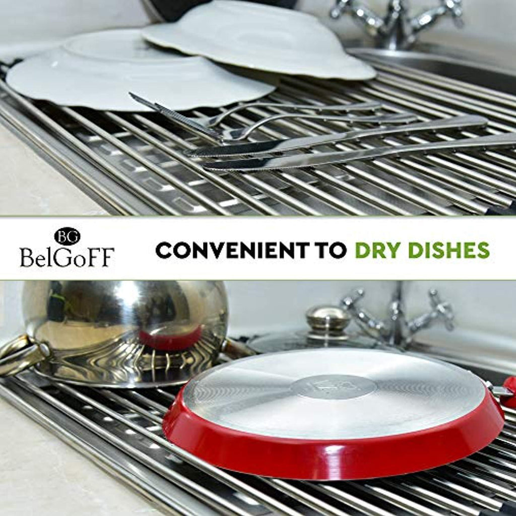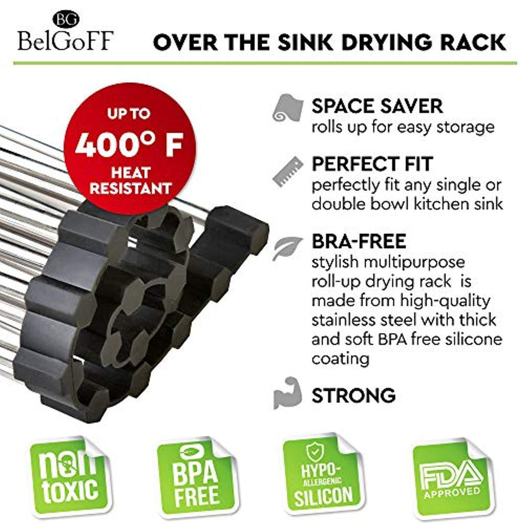 MULTIFUNCTIONAL - The roll up dish drying storage rack holder can be used not only for drying kitchen utensils but also be a colander, a preparation desk put over the...