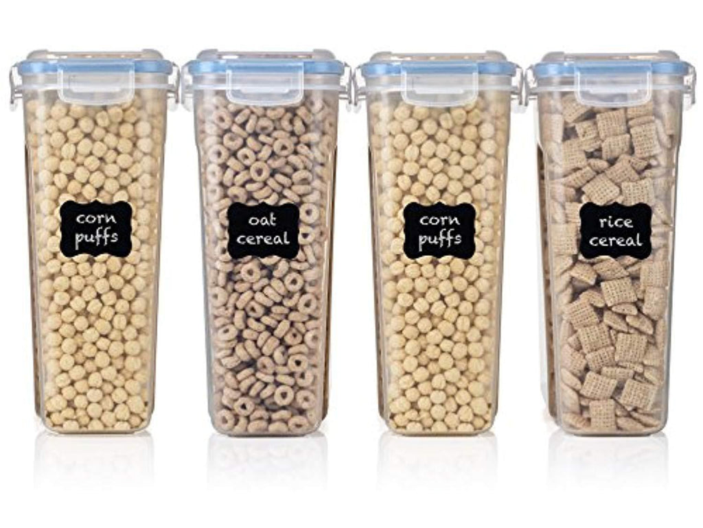 Set of 4 Cereal & Dry Food Storage Container (16.9 Cup/135.2oz) + FREE Chalkboard Labels and Marker - Airtight Lid - Suitable For Cereal, Flour, Sugar, Coffee, Rice, Snacks,
