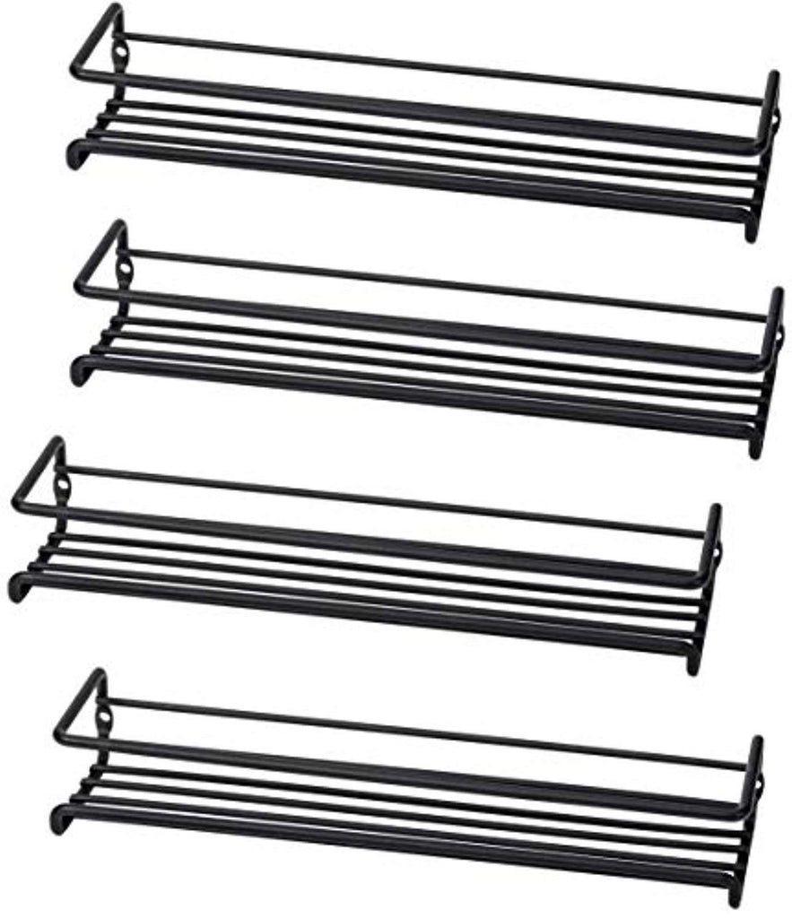 4 Single-tier Spice Rack Organizers - Use in kitchen, bathroom, garage and closets Handcrafted of extra-sturdy black powder-coated iron; Please Note Dimensions: 11 9/16 in x 3 in (2.5" useable)...