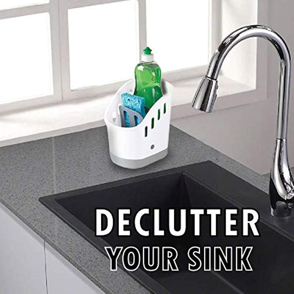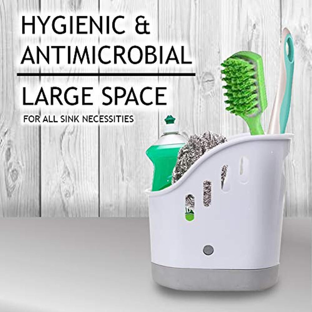 Sink Caddy Sponge Holder, Dish Soap Organizer for Kitchen Sink with Removable Compartment and Non-Slip Base for Brushes Scrubber Drainers, Drain Holes for Sanitary Drying Premium ABS