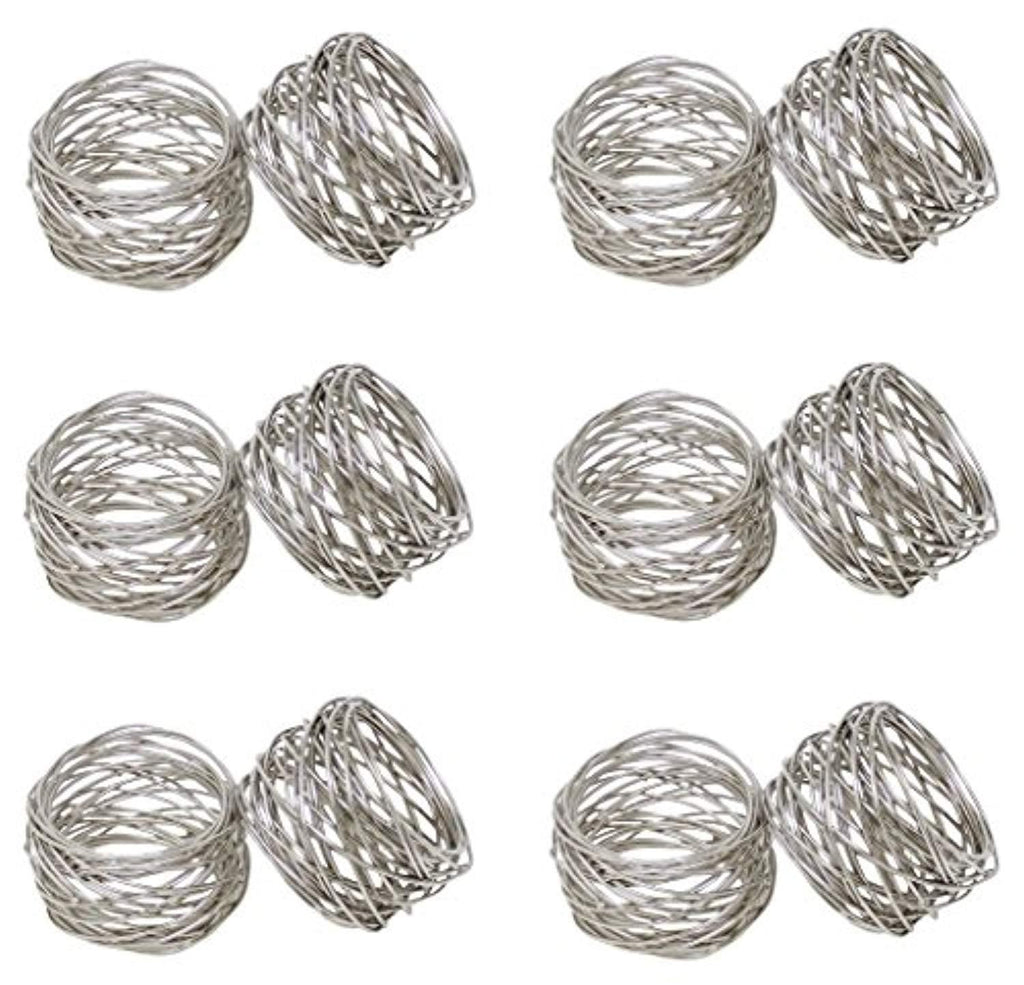 SKAVIJ Round Mesh Napkin Rings Set of 12 Silver for Wedding Banquet Dinner Decor Favor