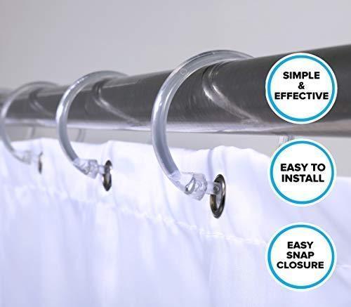 Simple and effective. Easy snap closure. Fits all standard diameter shower rods. Set of 12.