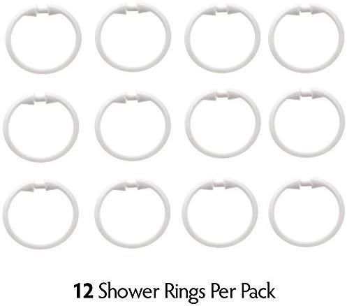 SlipX Solutions White Premium Plastic Shower Rings Provide Effortless Gliding on Standard Shower Rods (Set of 12, Easy Snap Closure, BPA-Free Plastic)