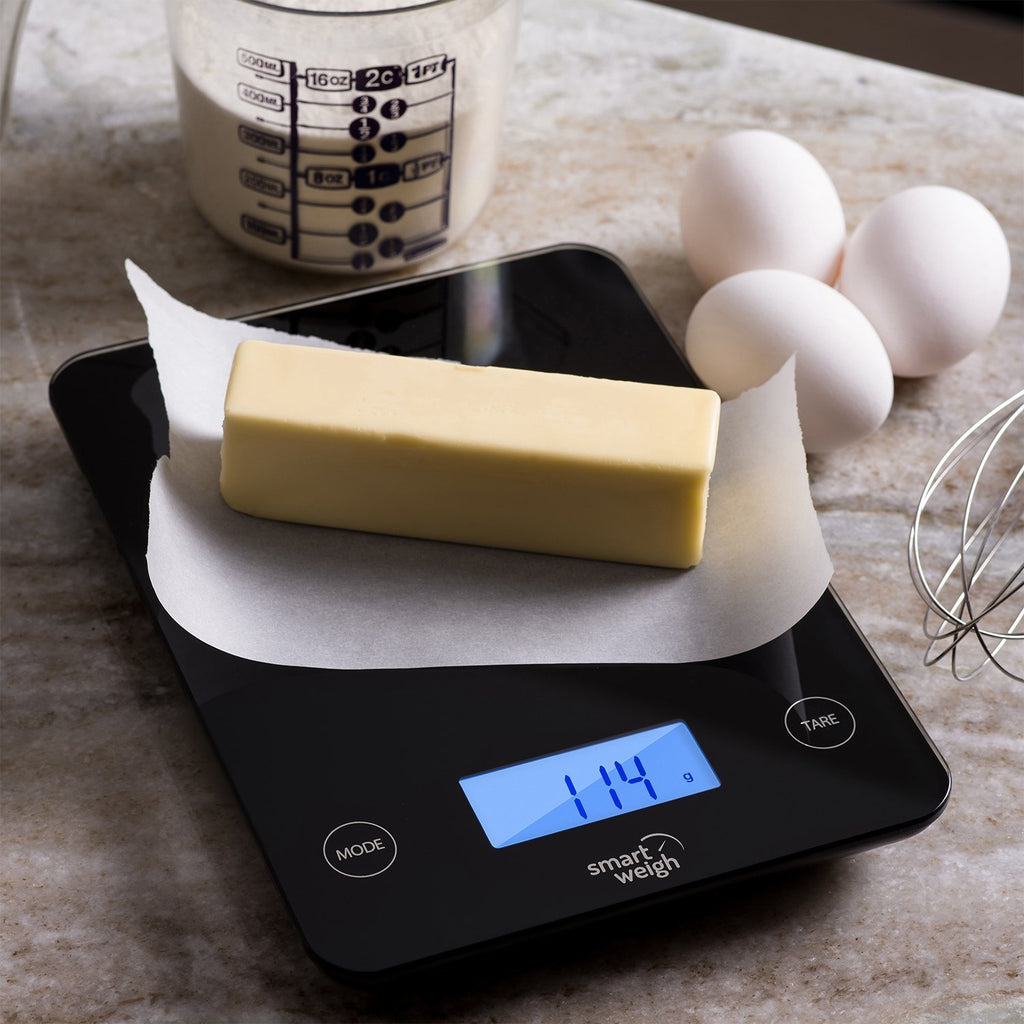 Smart Weigh Digital Glass Top Kitchen and Food Scale, 5- Unit Modes, Liquid Measurement Technology, Professional Design, Black