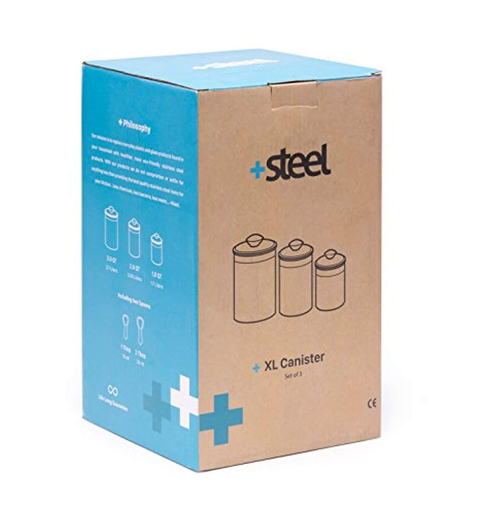 GREAT FOR COFFEE, TEA, SUGAR – The +Steel XL Canister Set is a perfect canister set for coffee, tea, sugar, flour and etc. Larger than our standard Canister Set with...
