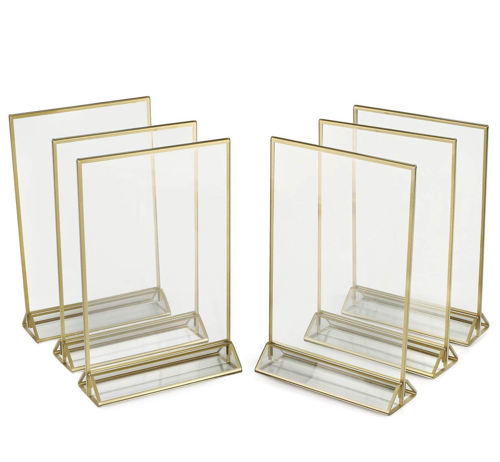 SUPER STAR QUALITY Clear Acrylic 2 Sided Frames With Gold Borders and Vertical Stand (Pack of 6) )