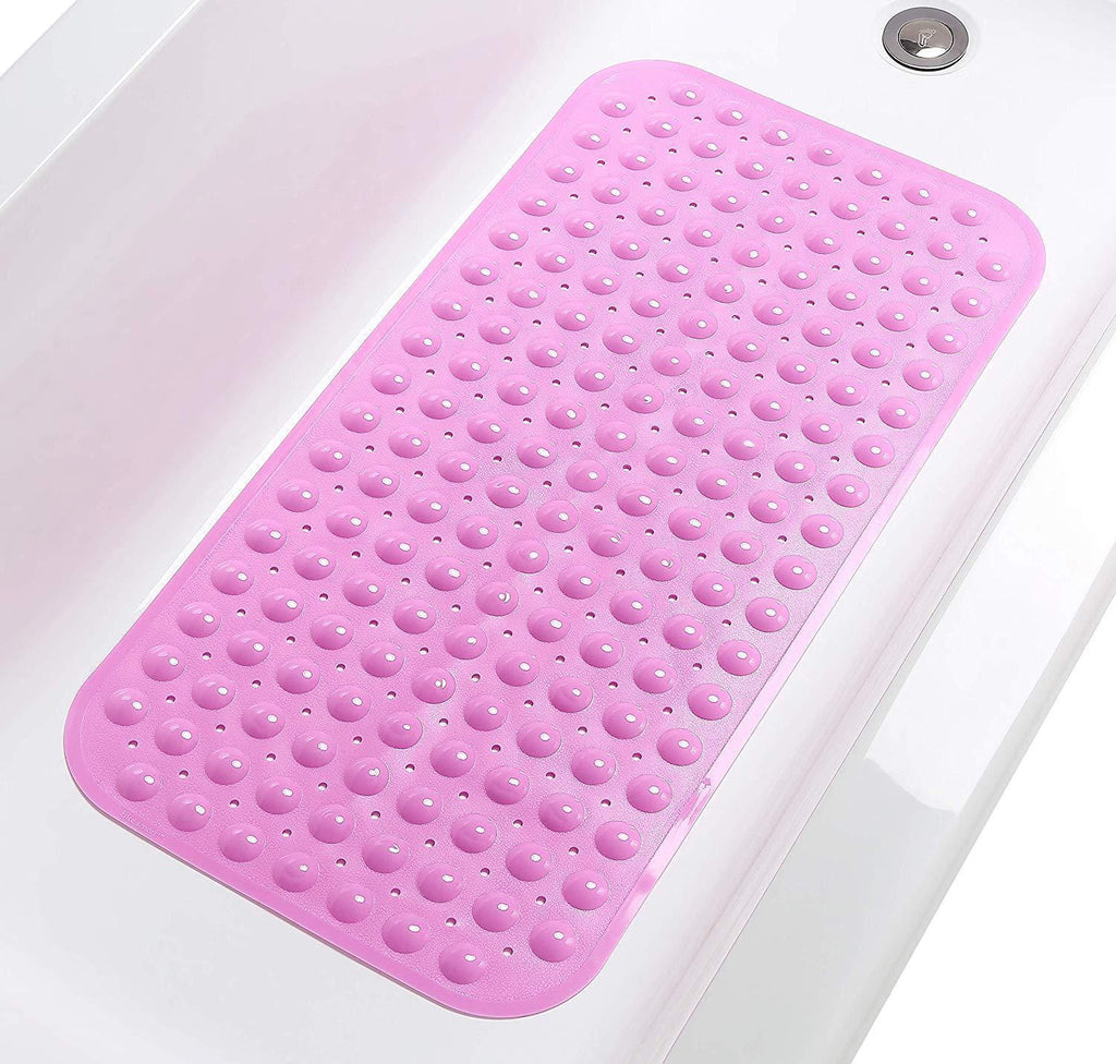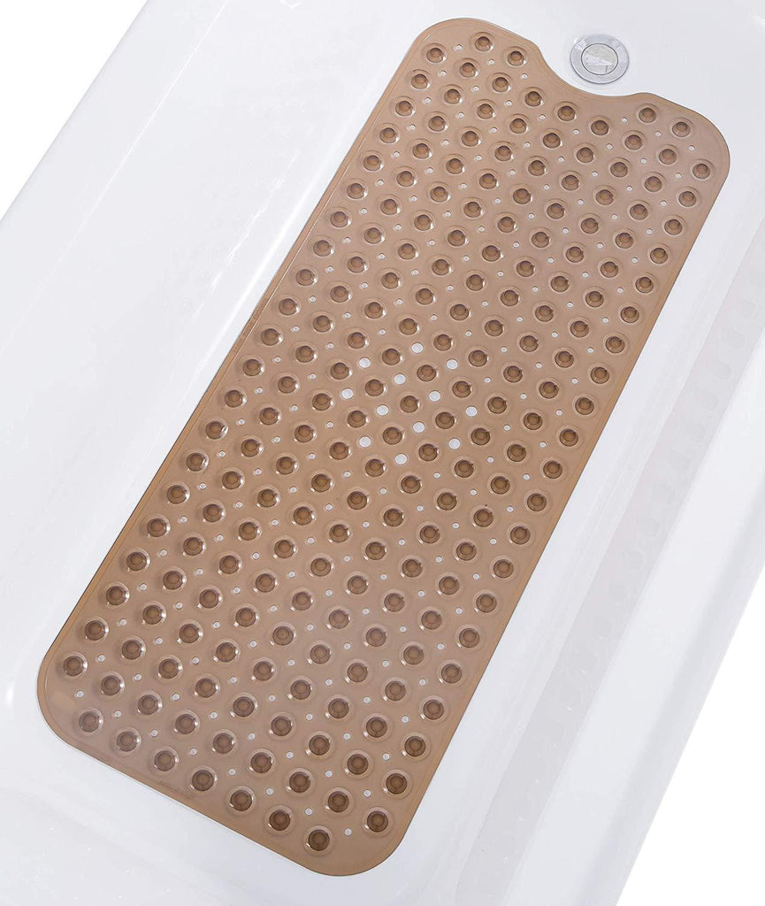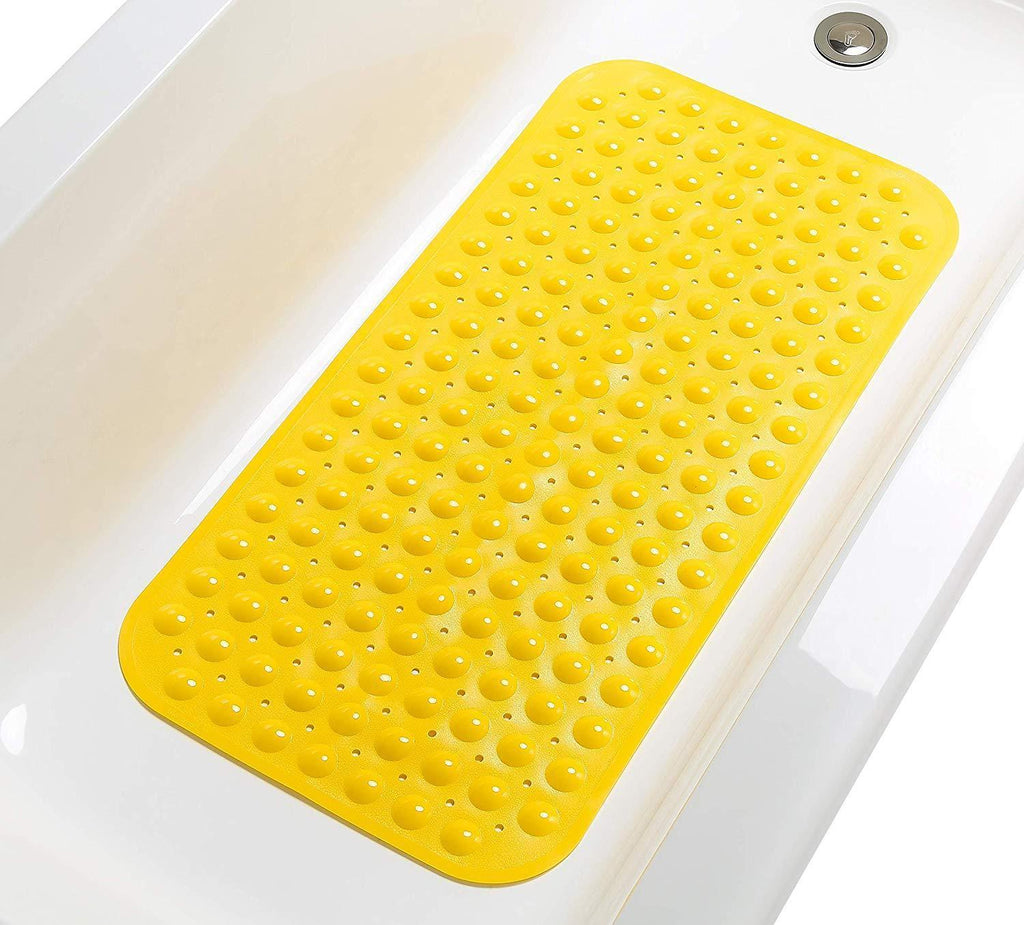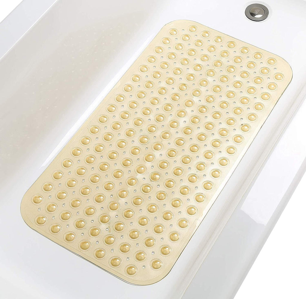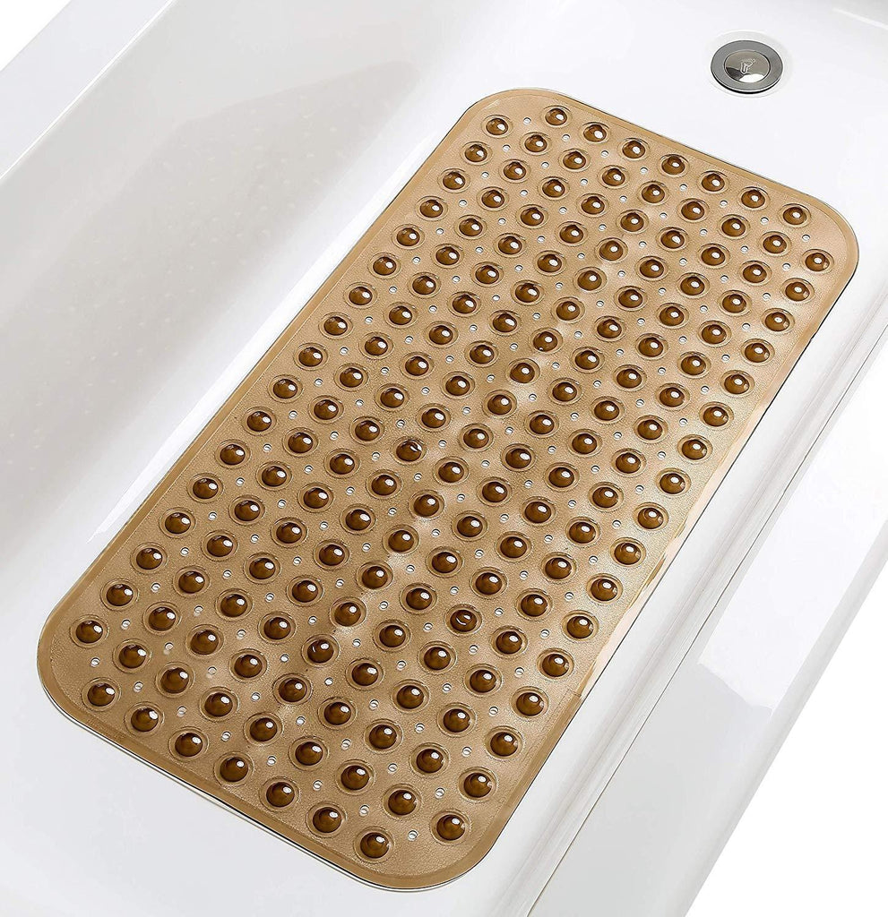 • FOR SMOOTH BATHTUB FLOORS ONLY - NOT FOR TEXTURED SURFACES. Safety first: The best extra-long slip-resistant bathtub mat - will keep you, your children, the elderly and disabled safe when bathing and showering. 200 powerful suction cups - will not slip when used on non-textured shower or tub surface. 39”x16", fits standard tub, covers the whole tub floor, with 33% more coverage than the average mat, for added anti-slip protection from slip and fall accidents. Textured surface - superior grip.