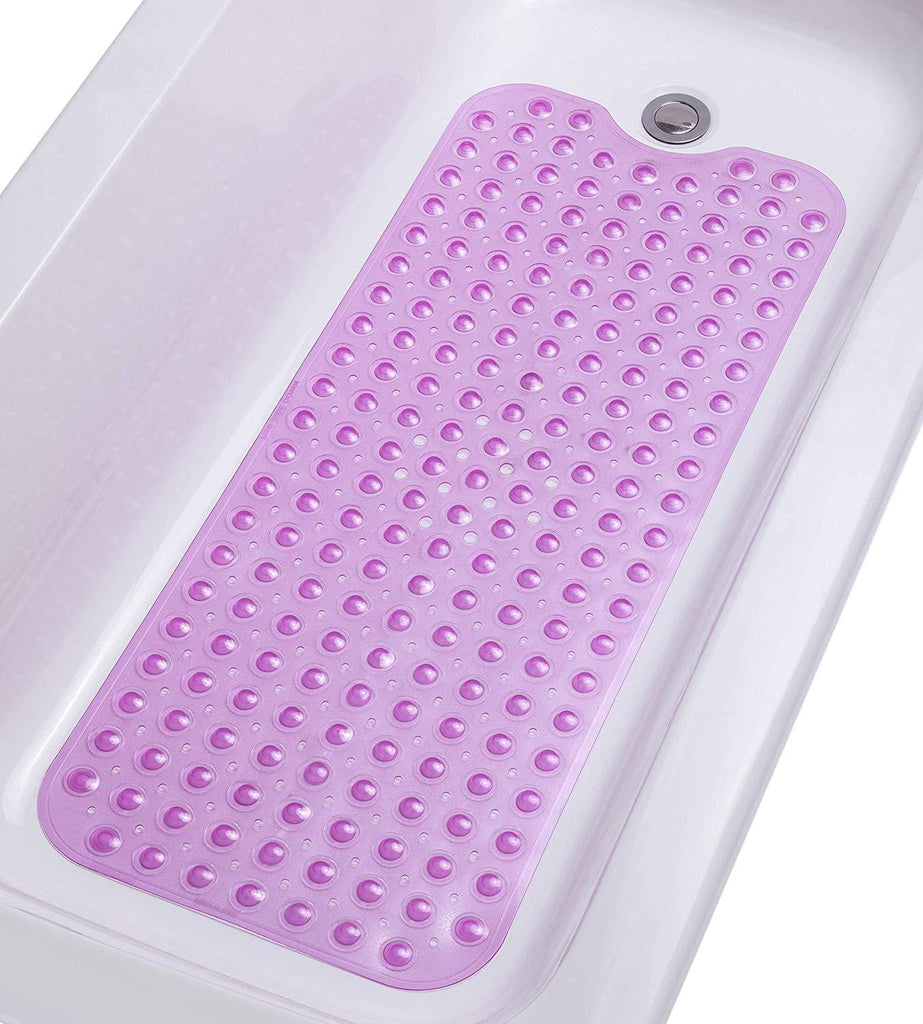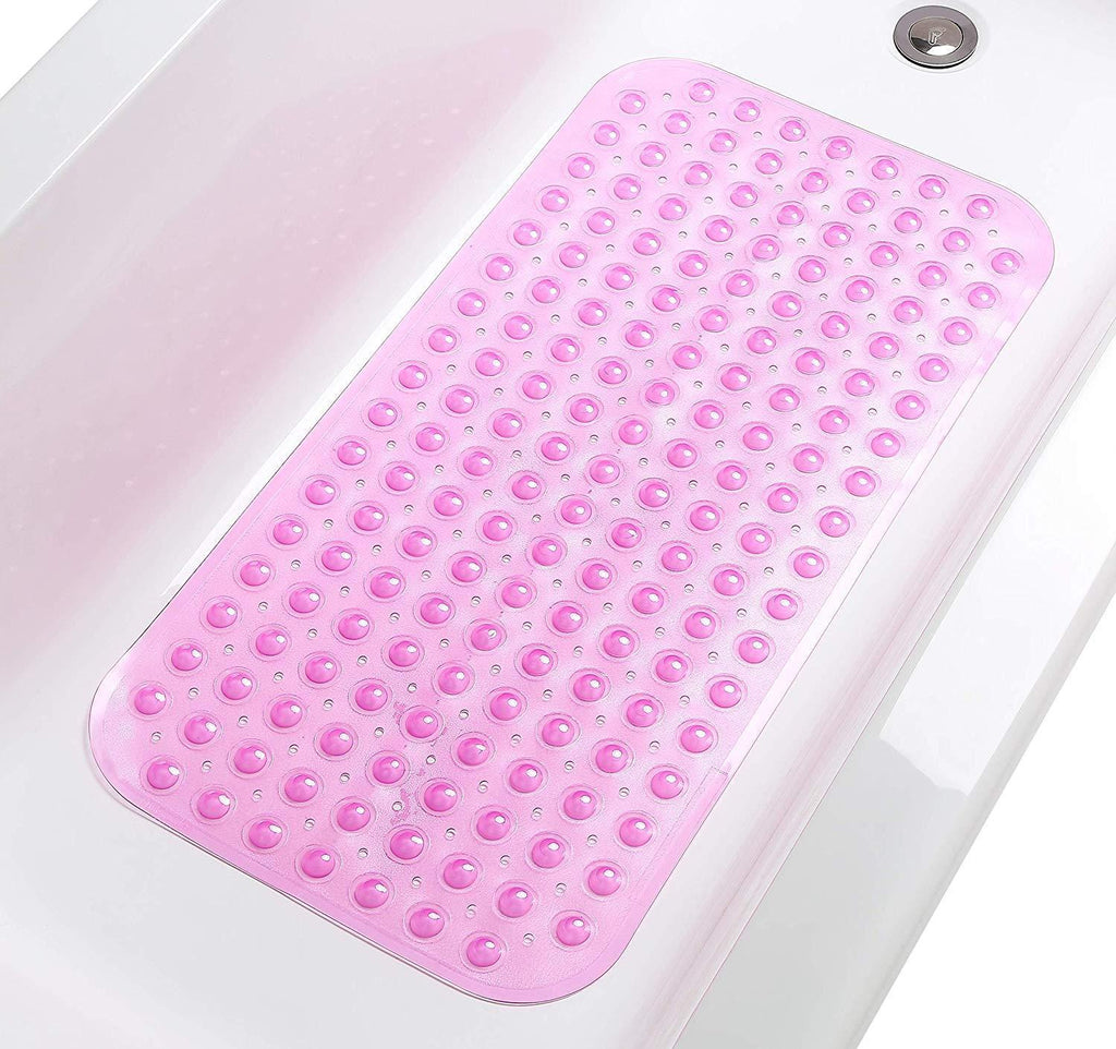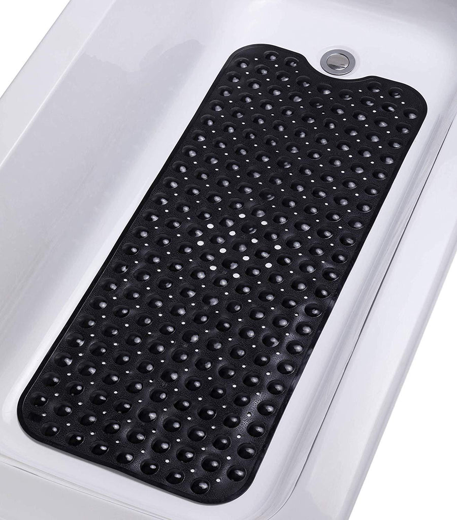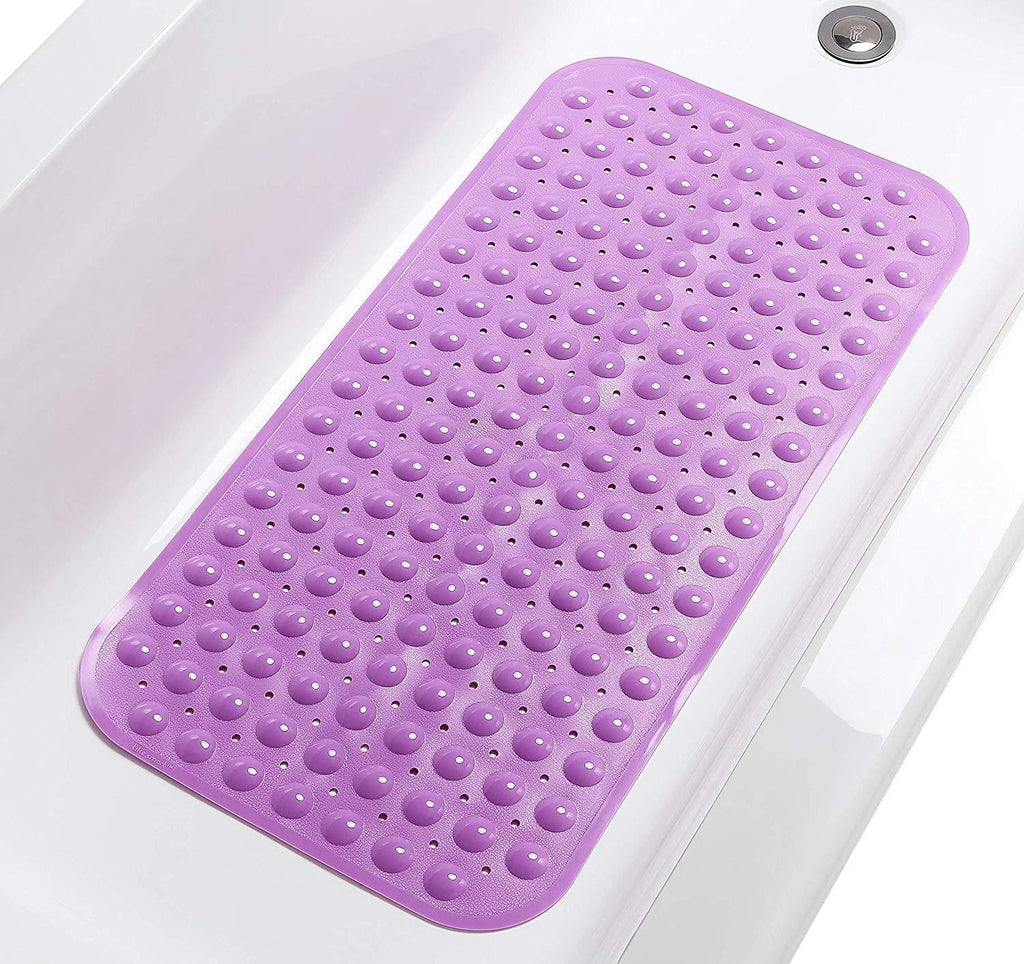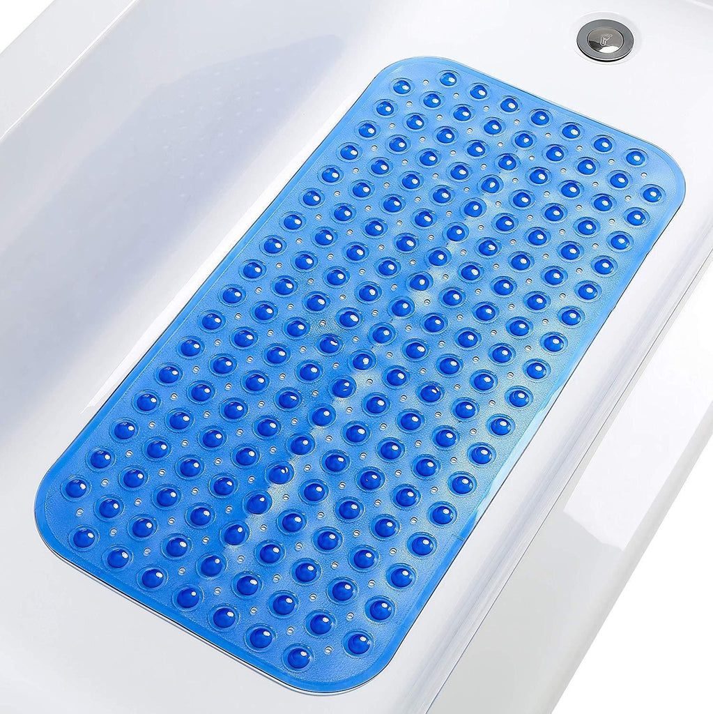 • FOR SMOOTH BATHTUB FLOORS ONLY - NOT FOR TEXTURED SURFACES. Safety first: The best extra-long slip-resistant bathtub mat - will keep you, your children, the elderly and disabled safe when bathing and showering. 200 powerful suction cups - will not slip when used on non-textured shower or tub surface. 39”x16", fits standard tub, covers the whole tub floor, with 33% more coverage than the average mat, for added anti-slip protection from slip and fall accidents. Textured surface - superior grip.