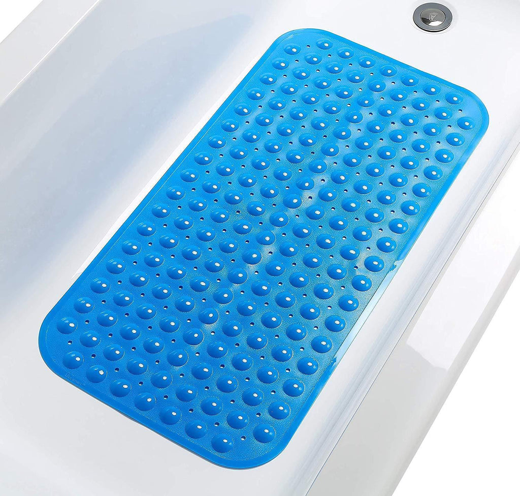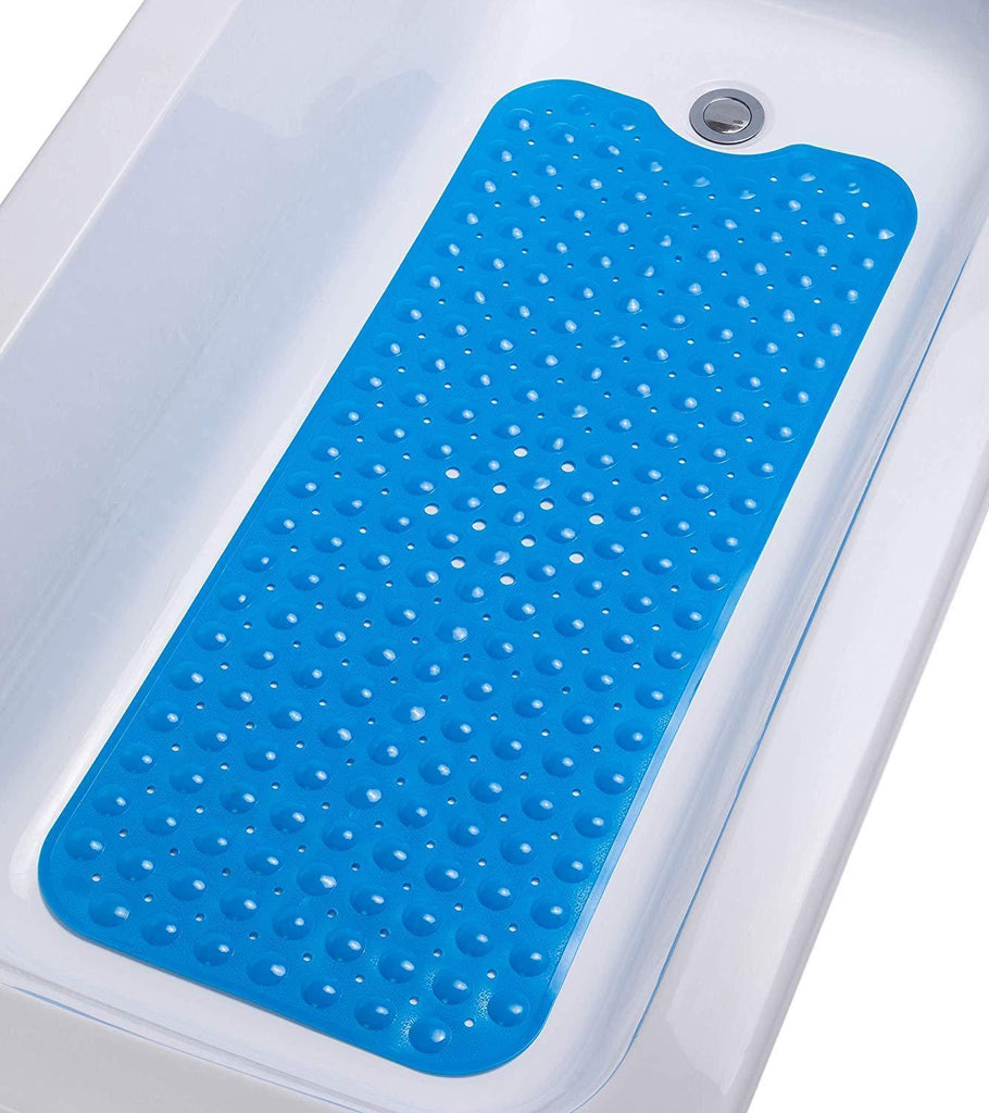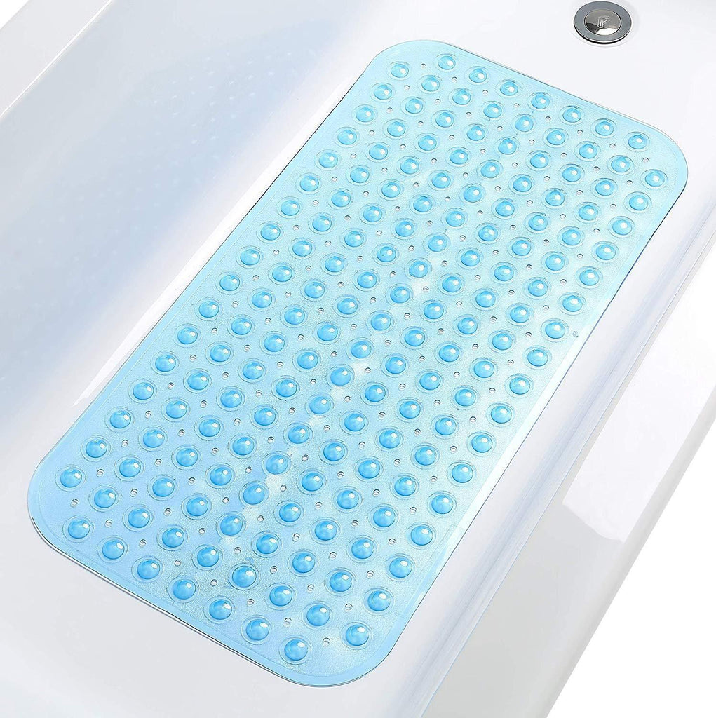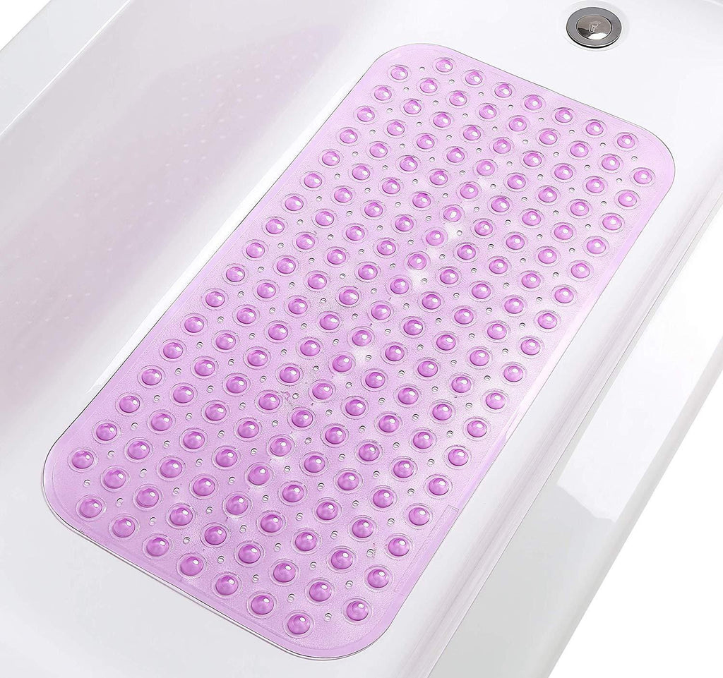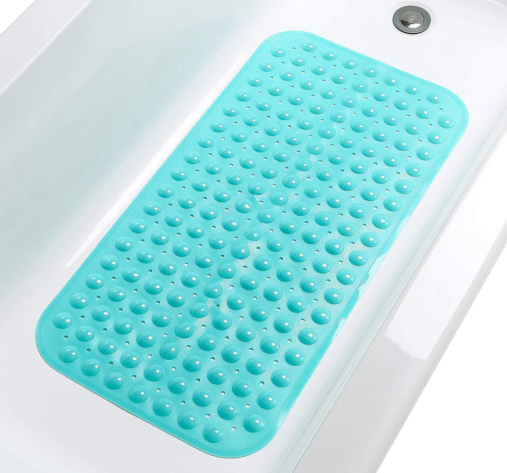 • BEST MATERIALS: Highest quality phthalate-free, BPA-free allergen-free vinyl. Heavy duty, weighing in at 1.75 lbs., it lays flat and won’t slip on the tub or shower floor. Curl-free packaging makes this extra long bath mat easy to use starting day 1. Stronger than rubber bathtub mats, cleaner than bath rugs, best of the non-slip bath mats on the market!