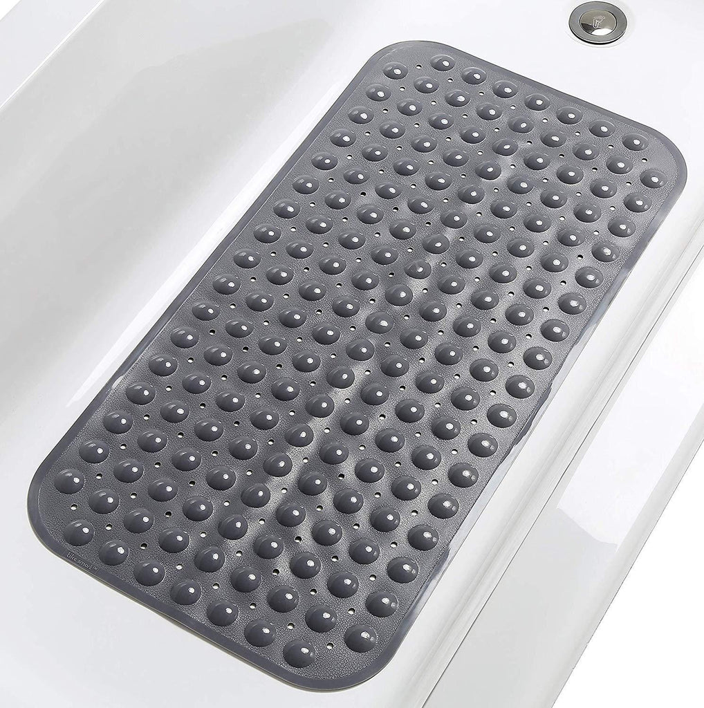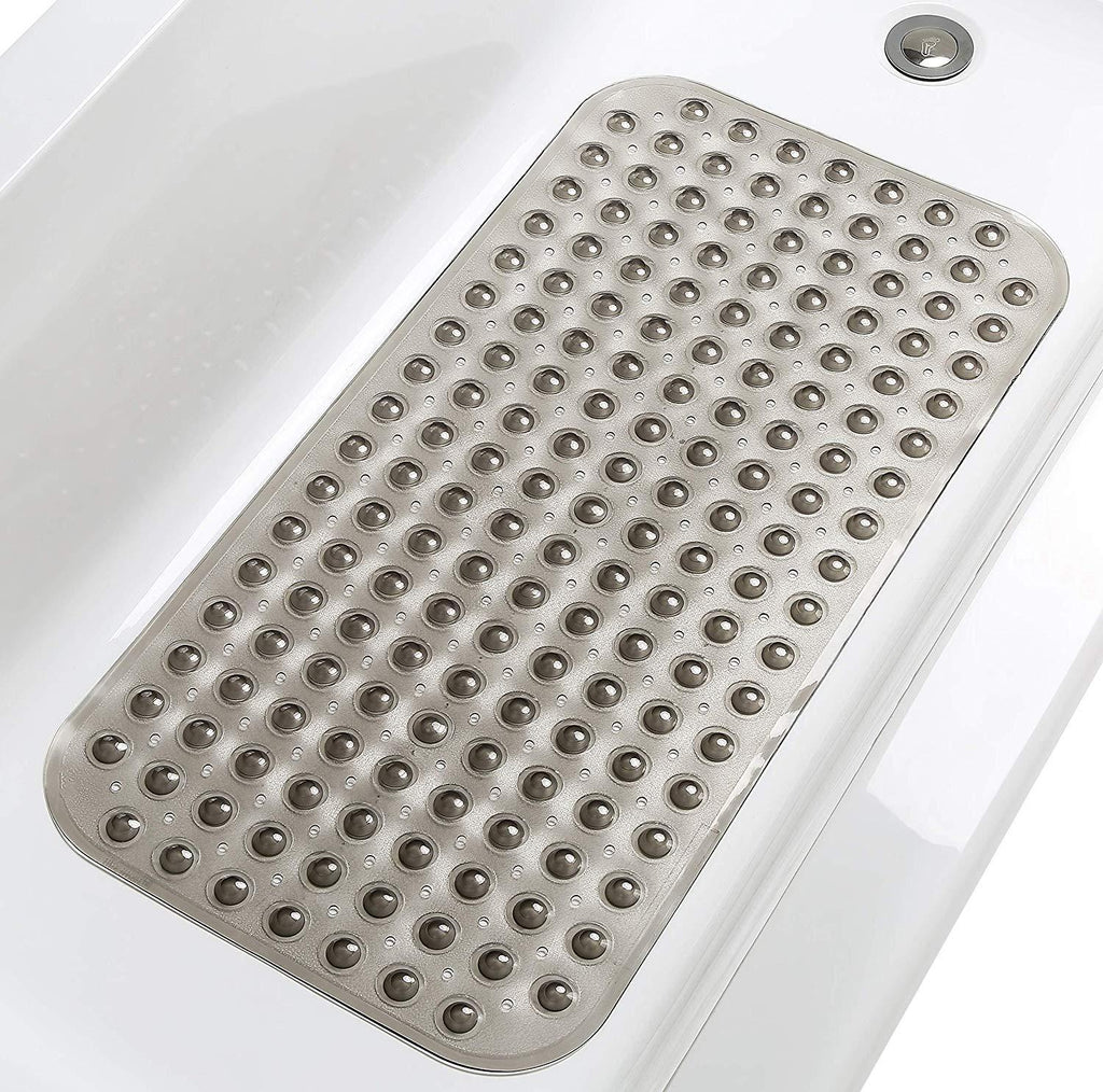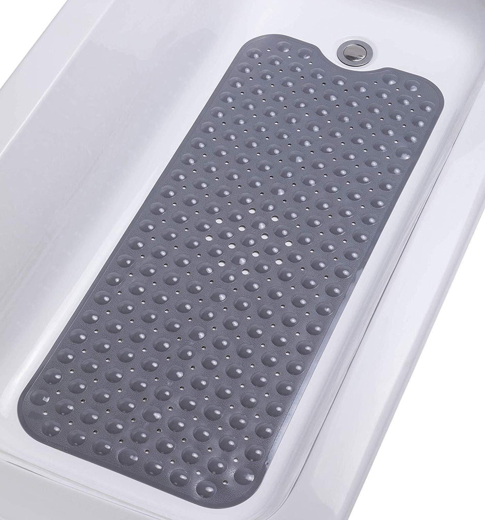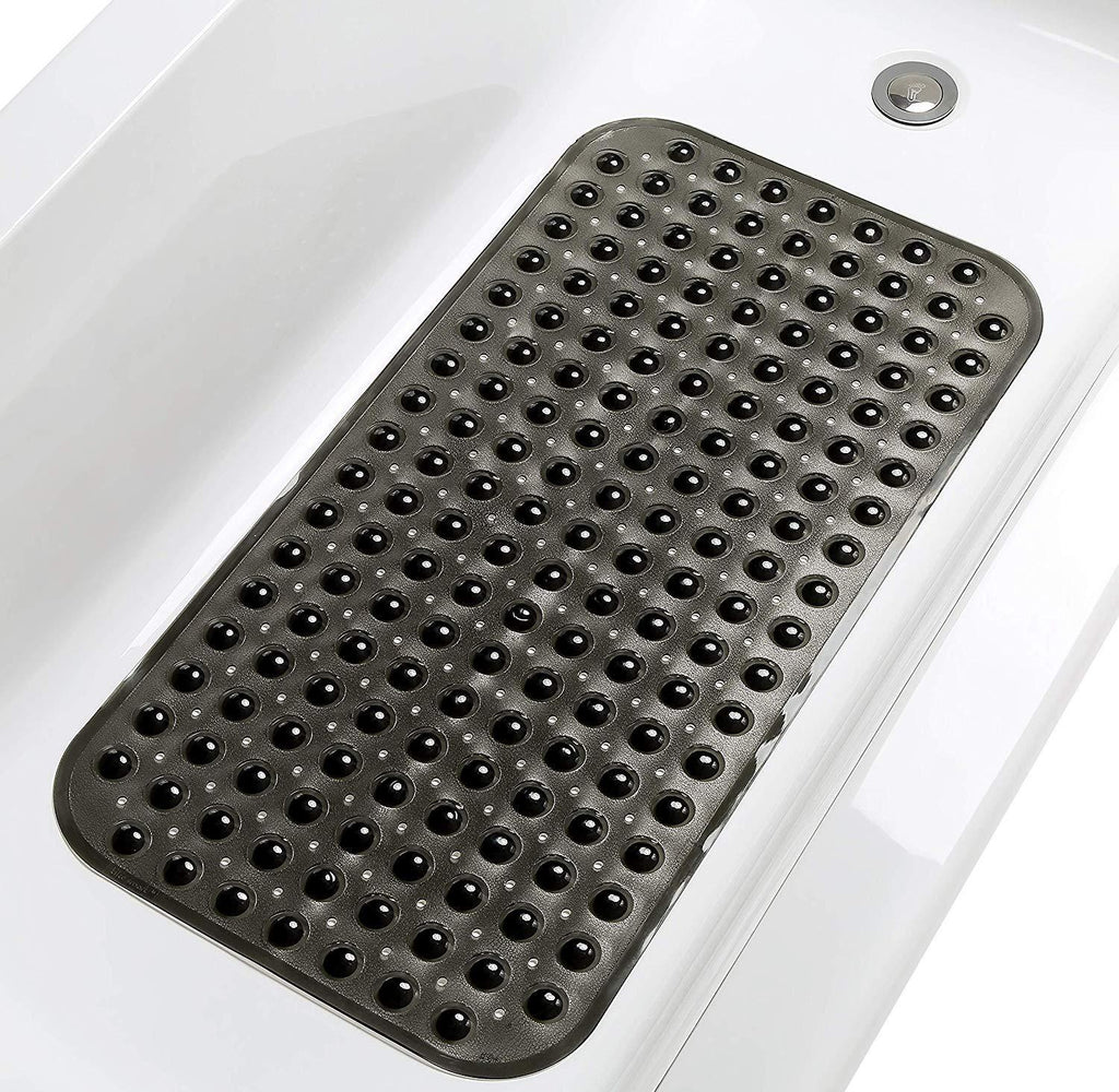 tike smart Extra-Long Non-Slip Bathtub Mat 39”x16” (for Smooth/Non-Textured Tubs Only) Safe, Clean, Anti-Bacterial, Machine-Washable, Superior Grip&Drainage, Vinyl Bath Mat, Opaque Gray (Grey) …