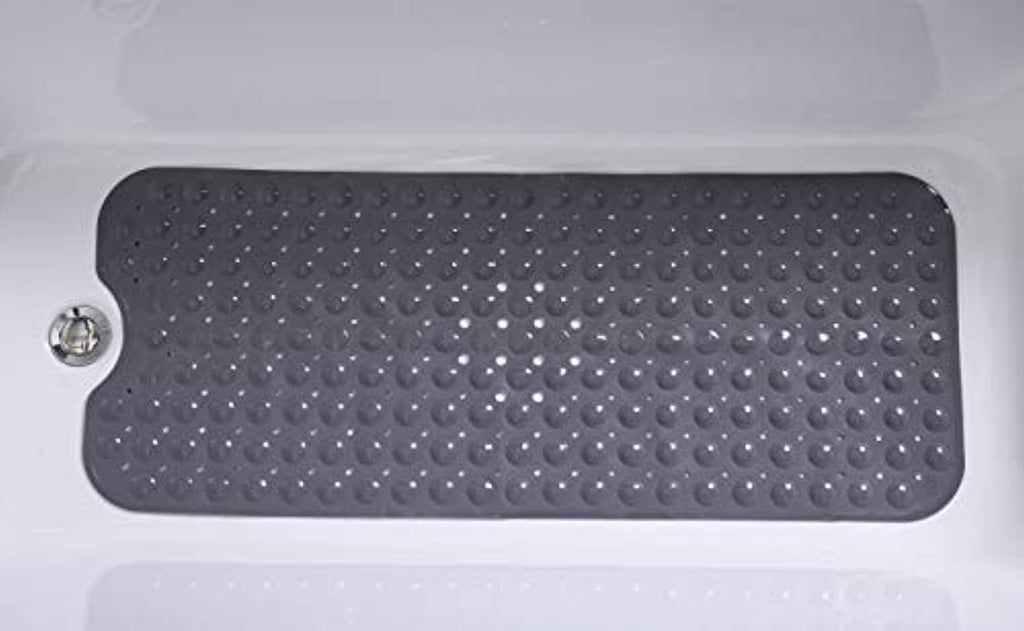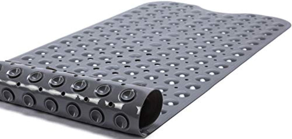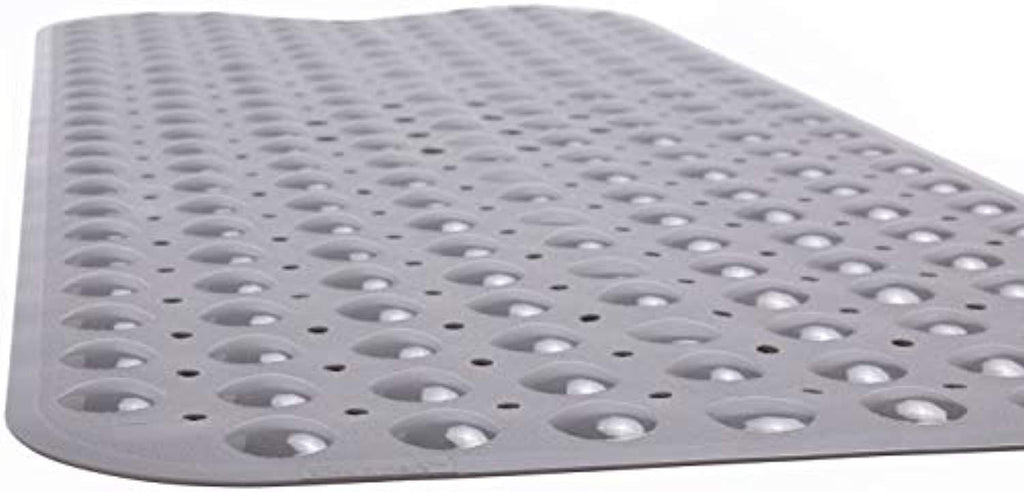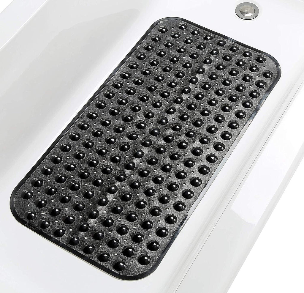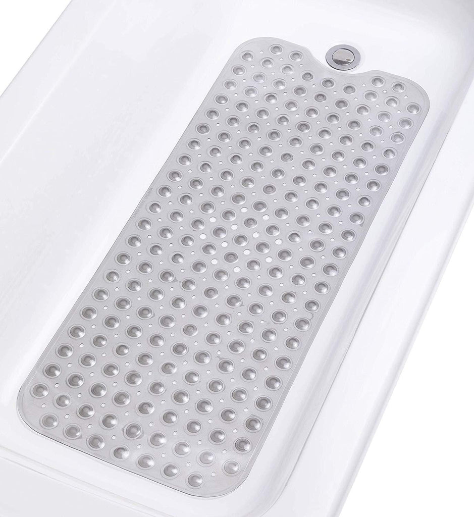 tike smart Extra-Long Non-Slip Bathtub Mat 39”x16” (for Smooth/Non-Textured Tubs Only) Safe, Clean, Anti-Bacterial, Machine-Washable, Superior Grip&Drainage, Vinyl Bath Mat, Opaque Gray (Grey) …