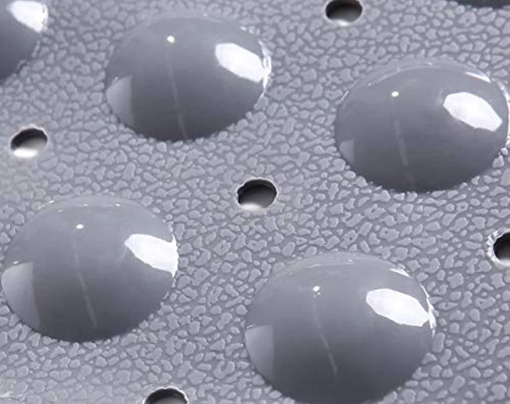 • CLEAN: The cleanest bathtub mat available, anti-bacterial (anti-microbial) and machine washable for years of safe, healthy, worry-free use with no mold or mildew. 174 drainage holes keep water flowing through the bath mat. Opaque gray (grey) color.