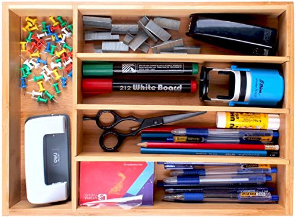 Utopia Kitchen Bamboo Silverware Organizer- 5 Compartments - Bamboo Drawer Organizer Tray - Bamboo Hardware Organizer