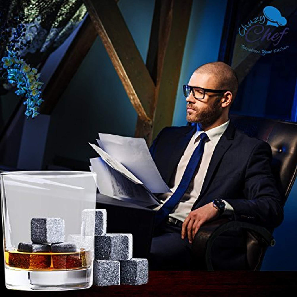 • KEEPS TASTE: Because our sipping cube stones are non porous, they do not give off a taste or odor and keep your drink’s taste pure. Our whisky stone set is a great idea for Father's Day, Birthday, Retirement Gifts, Anniversary, Valentines, Promotion, Old fashioned Men and Women party.