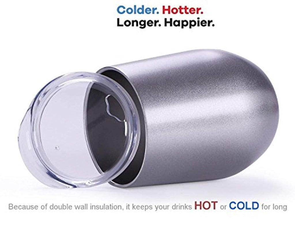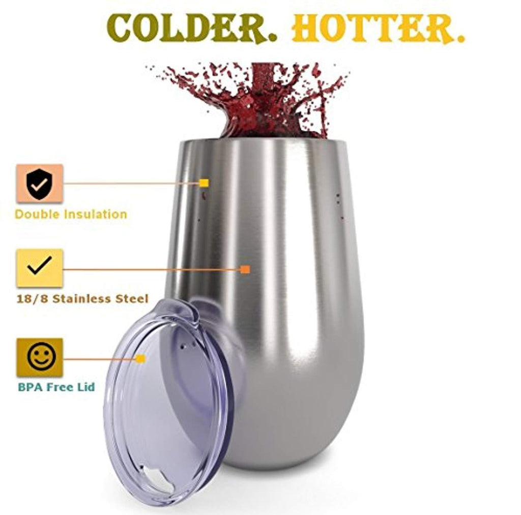 • UNBREAKABLE TAKE THEM ANYWHERE : Portable Stemless Wine Cups with Lid - These stemless Stainless Steel Wine Glasses are made of premium 18/8 stainless steel, more durable than other ordinary glasses; And they are not easy to be broken. Double wall stemless metal cup ideal for Travel and Camping