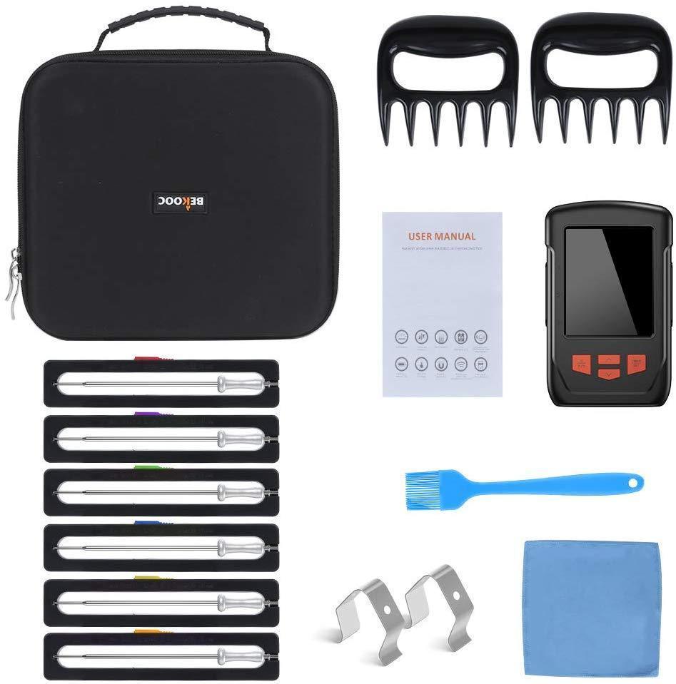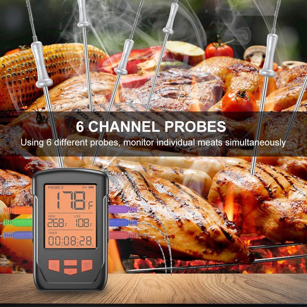 Wireless Meat Thermometer for Grilling, Bluetooth Meat Thermometer Digital BBQ Cooking Thermometer with 6 Probes, Alarm Monitor Cooking Thermometer for Barbecue Oven Kitchen, Support IOS & Android