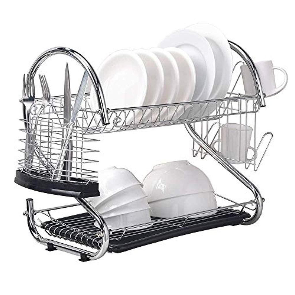 Wtape Durable Steel Rust Proof Kitchen In Sink Two Tier Dish Drying Rack, Dish Drainer