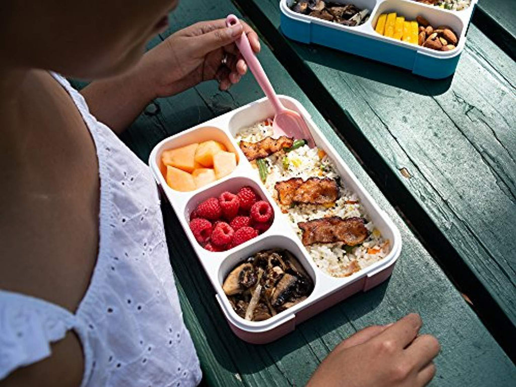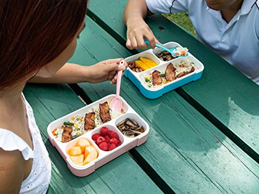 Zimmi Lunch Box Set of 2 Leakproof Lunch Containers, Pink Blue, 3-4 Insulated Compartments, Lightweight Bento Lunch Boxes for Kids Adults Athletes, Fit for Meal Prep, Snacks, Portion Control